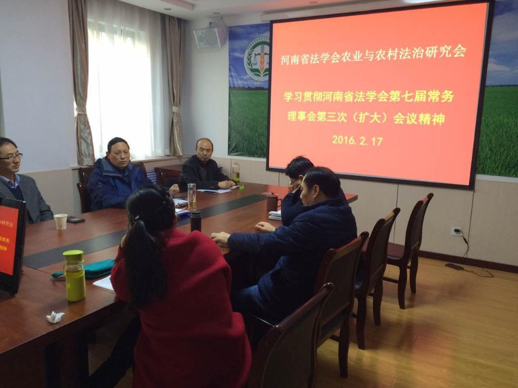 河南省法学会农业与农村法治研究会先后于217日、20日两次召开会长(扩大)会议,认真学习贯彻落实河南省法学会七届三次常务理事会(扩大)精神。