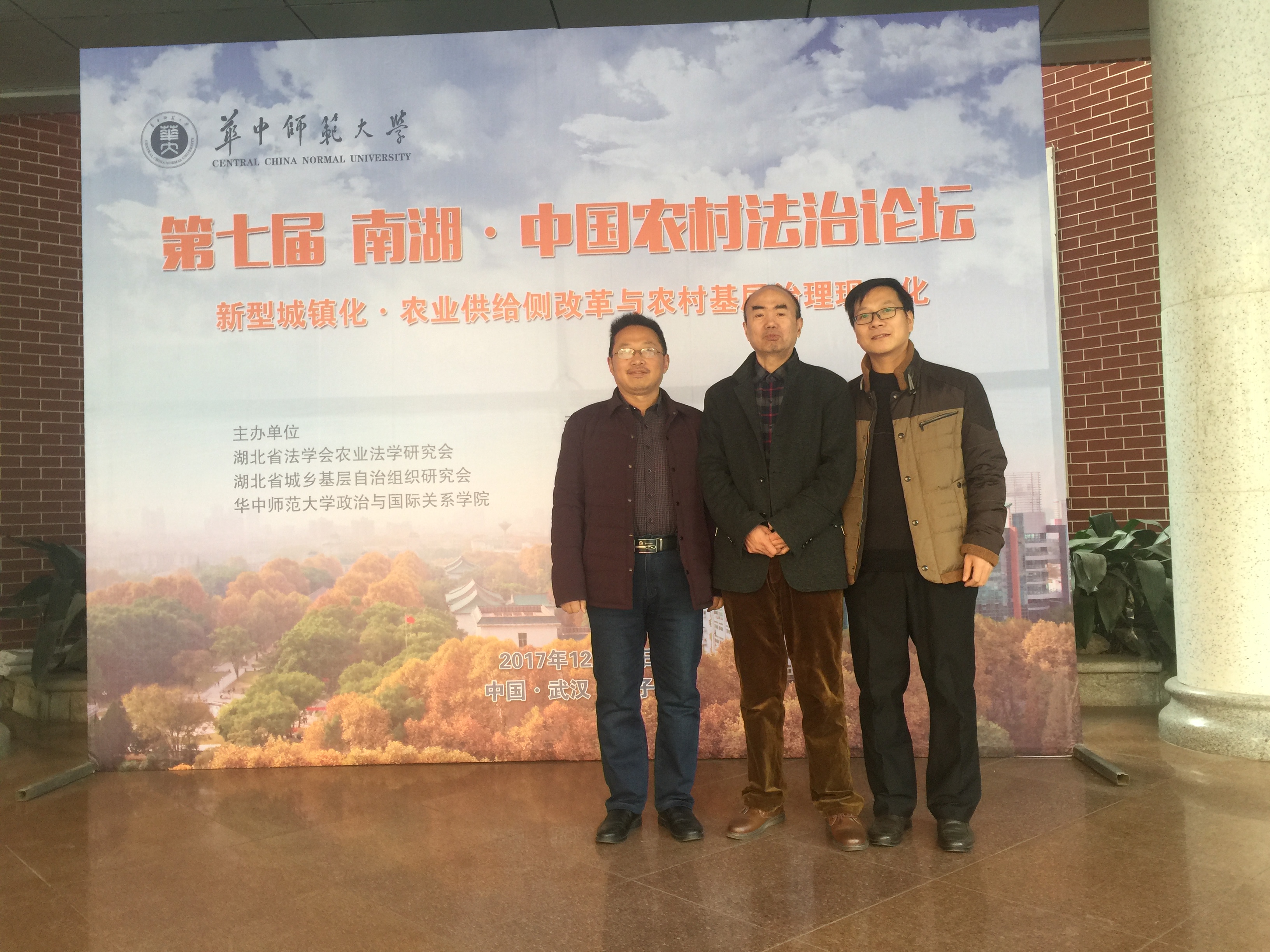 2017年12月24日,第七届“南湖•中国农村法治论坛”在华中师范大学科学会堂隆重召开。本届论坛由湖北省法学会农业法学研究会、湖北省城乡基层自治组织研究会、华中师范大学政治与国际关系学院、华中农业大学农民权益保护与区域发展研究中心、湖北大学农村社区研究中心、全国民政政策理论研究基地联合举办,主题为“新型城镇化•农业供给侧改革与农村基层治理现代化”。来自全国各省45所高校和研究机构的200余名代表与会。