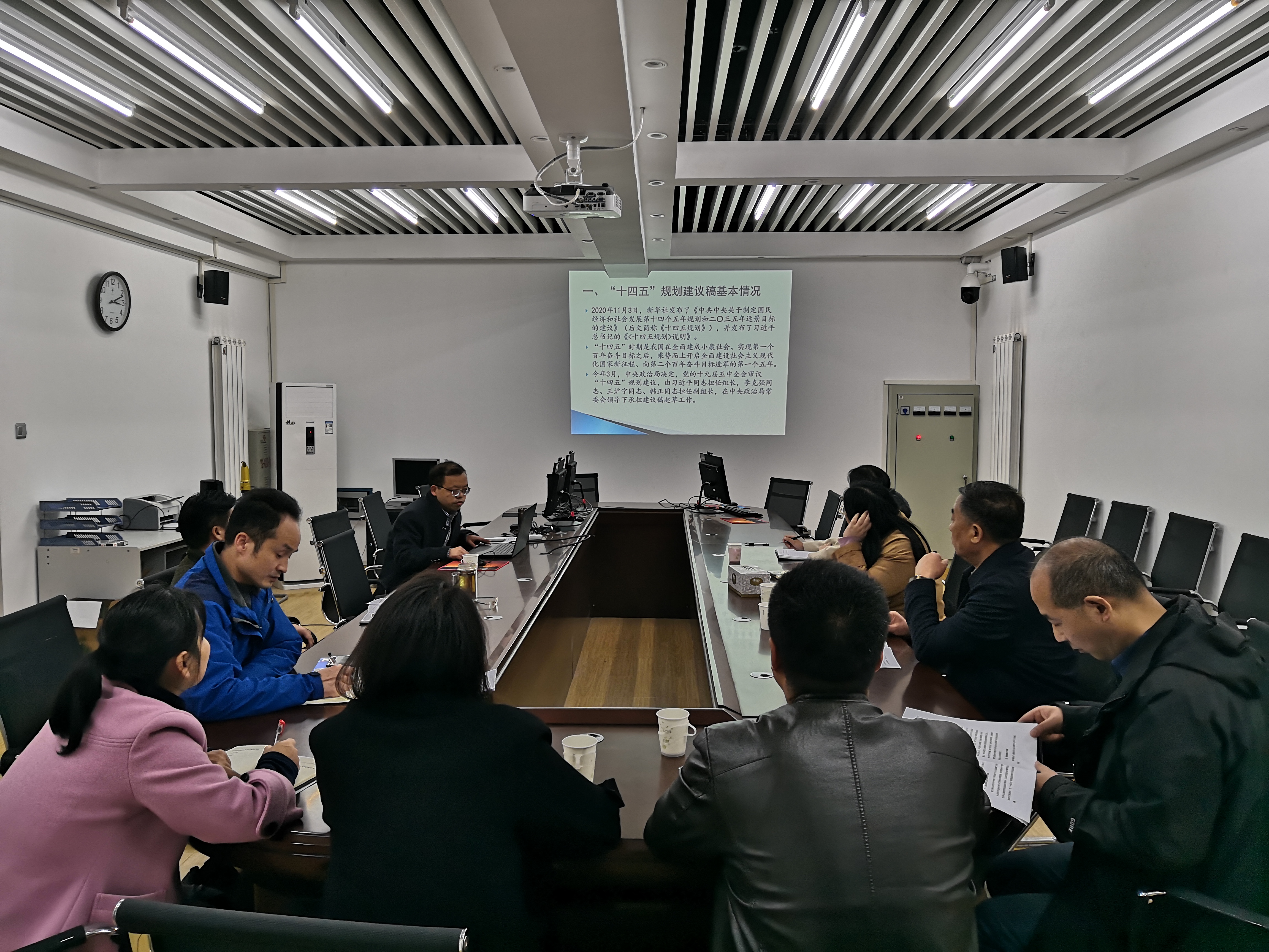 最后,王志宏处长进行了总结,他指出我们要认真学习《中共中央关于制定国民经济和社会发展第十四个五年规划和二〇三五年远景目标的建议》,要结合工作深入学习有关精神,要有宏观的视野,微观的把握,下一步要结合上级精神,合理制定国有资产管理处的“十四五”发展规划。