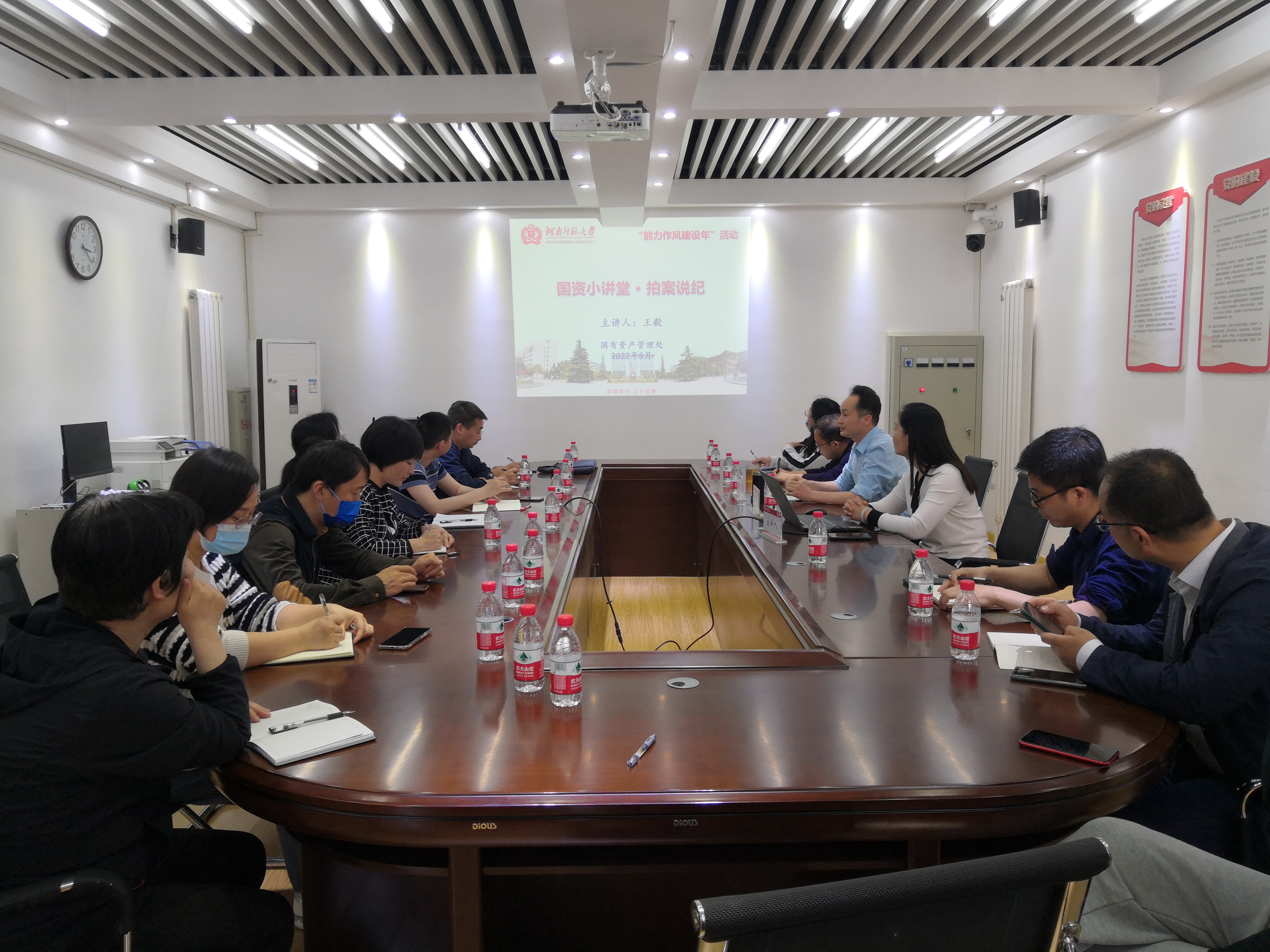 为扎实做好党风廉政建设,营造风清气正的工作常态,推进我校国有资产管理、招标采购工作规范开展,国有资产管理处于5月3日下午在国资小院开标室开展了“国资小讲堂·拍案说纪”活动,活动由王志宏处长主持,邀请了我校纪委(监察专员办公室)综合室王毅主任讲课,化学化工学院、物理学院、生命科学学院、教务处、科技处、后勤管理处、基建处、实验室与设备管理中心等学院与职能部门有关同志参加了学习。
