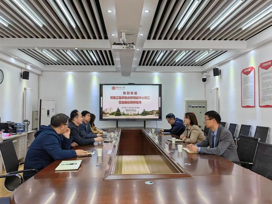 张锋涛对张秋慧一行表示欢迎,并介绍了我校国有资产与实验室管理处的机构设置、人员配置、部门职责及开展的主要工作情况。张秋慧主任介绍了河南工程学院分析测试中心的仪器设备共享情况,说明来访目的及需交流的相关问题。设备保障与技术科科长张玉蒙对我校大型仪器设备开放共享平台搭建、使用情况等做了详细汇报,双方科室负责人就管理工作中存在的问题及解决办法进行了深入讨论交流。