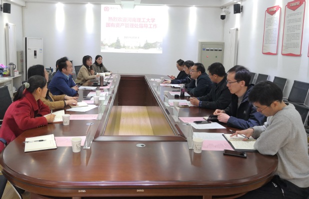首先王志宏处长代表学校对河南理工大学一行的到来表示热烈欢迎,并介绍了我校国资处的机构设置、人员配置、部门职责及开展的主要工作情况。随后王永保处长对到访人员进行介绍,说明来访目的及需交流的相关问题,并简要介绍了在日常工作中的一些经验做法。