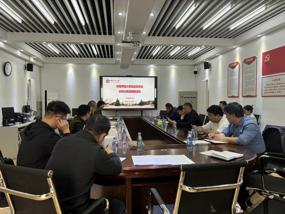 为加强实验室安全精细化管理,提高实验室安全风险防范的针对性和有效性,4月15日下午,国有资产与实验室管理处在小院会议室召开实验室安全分级分类管理推进会,各二级教学科研单位主管安全副院长和实验室秘书参加会议,会议由副处长张鑫主持。