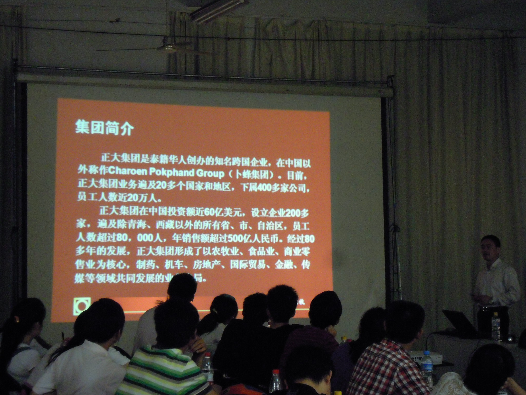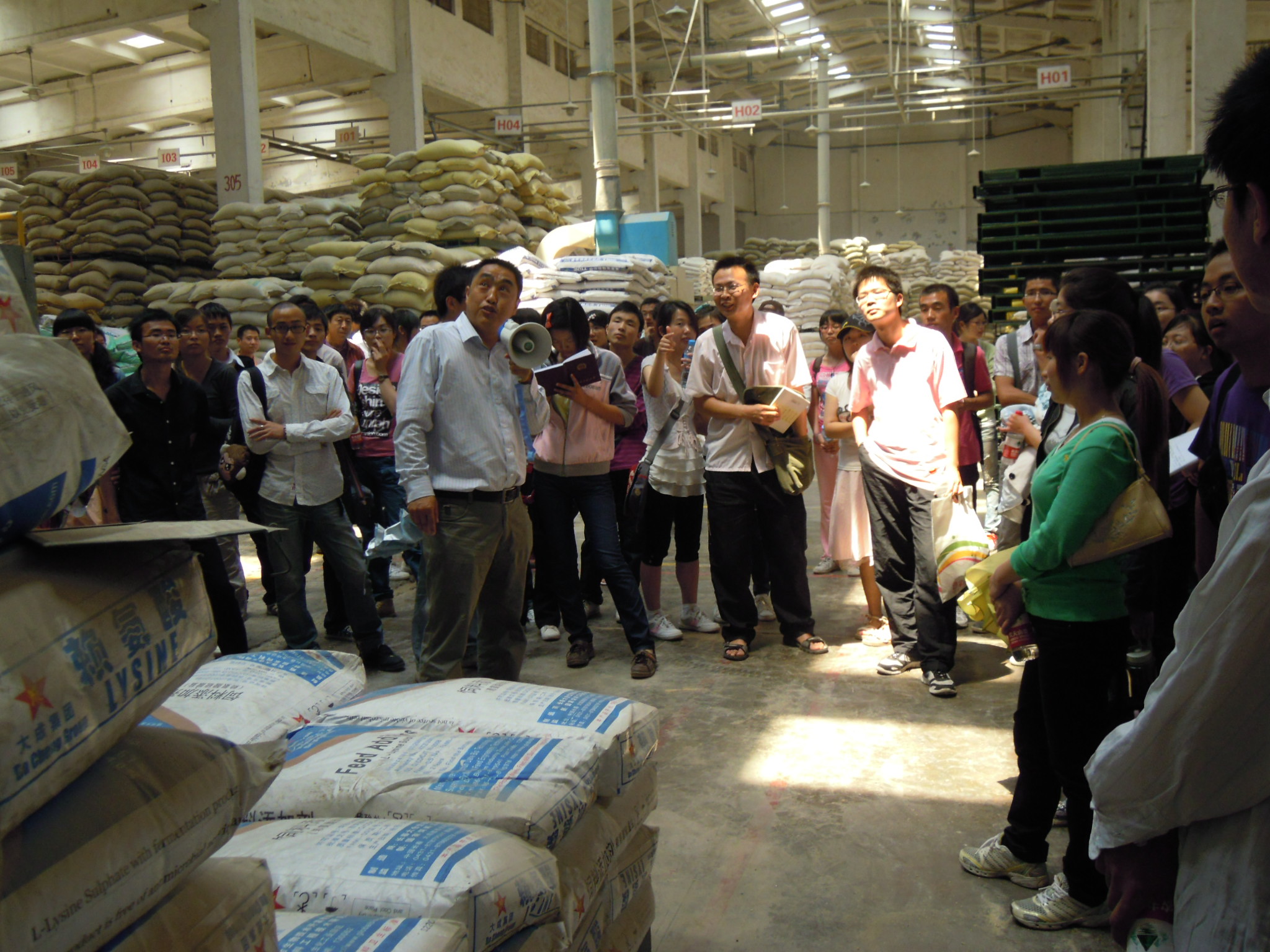 开封正大饲料有限公司是我国饲料工业的龙头企业。师生一行70人上午九点来到开封正大饲料有限公司。在公司培训中心,人力资源部范经理首先为师生们介绍了正大集团发展历史、现状及企业文化;生产部侯经理为大家详细讲解了公司的生产工艺和质控措施;随后,同学们在生产负责人的带领下进入了生产车间,参观了正大饲料有限公司的生产流程、原料库、成品库和品控室,期间,师生们就企业管理、生产技术及品控措施与企业主管人员进行了充分交流。