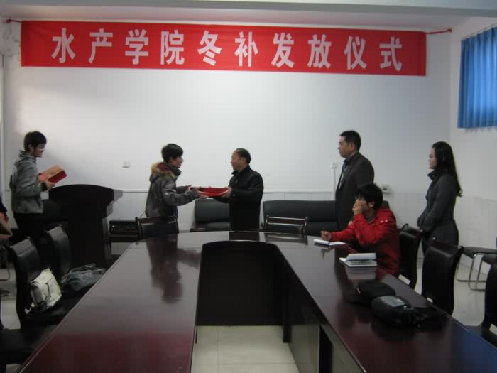 窗外寒风凛冽,水产暖意浓浓。11月23日上午10点,水产学院在水产养殖基地会议室举办“情暖冬日,筑爱水产”新生冬补发放仪式。水产学院党总支书记彭富旗,2011级辅导员朱国超,2012级辅导员闫潇及2012级10名受资助学生参加了此次冬补发放仪式。仪式由闫潇老师主持。