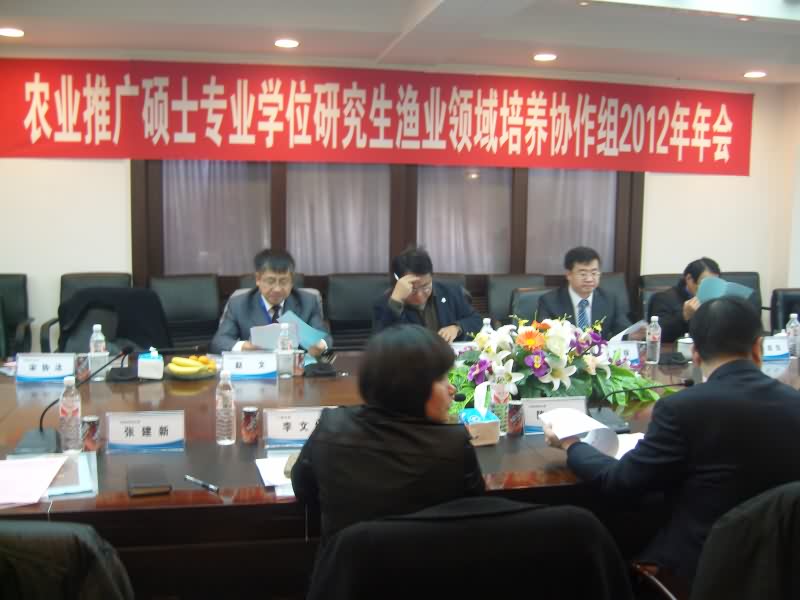 2012年12月17日-19日,教育部农业推广硕士渔业领域培养协作组主办、大连海洋大学承办的农业推广硕士渔业领域培养协作组2012年年会在辽宁省大连市召开。作为农业推广硕士渔业领域培养协作组成员单位,水产学院张建新博士应邀与会。会议代表33人,代表全国15个农业推广硕士渔业领域招生单位,目前全国共有渔业领域招生单位26个。