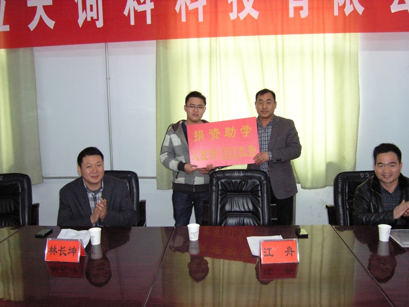 商丘市应天饲料科技有限公司董事长江舟先生将一万元资助款交到水产学院贫困学生手中,并勉励学生好好学习,以后回报社会。水产学院聂国兴院长代表学院对商丘市应天饲料科技有限公司的善举表示衷心的感谢,也希望受资助学生一定要知恩、感恩、报恩,并提出今后要加强校企合作,产学研紧密结合,共同发展。