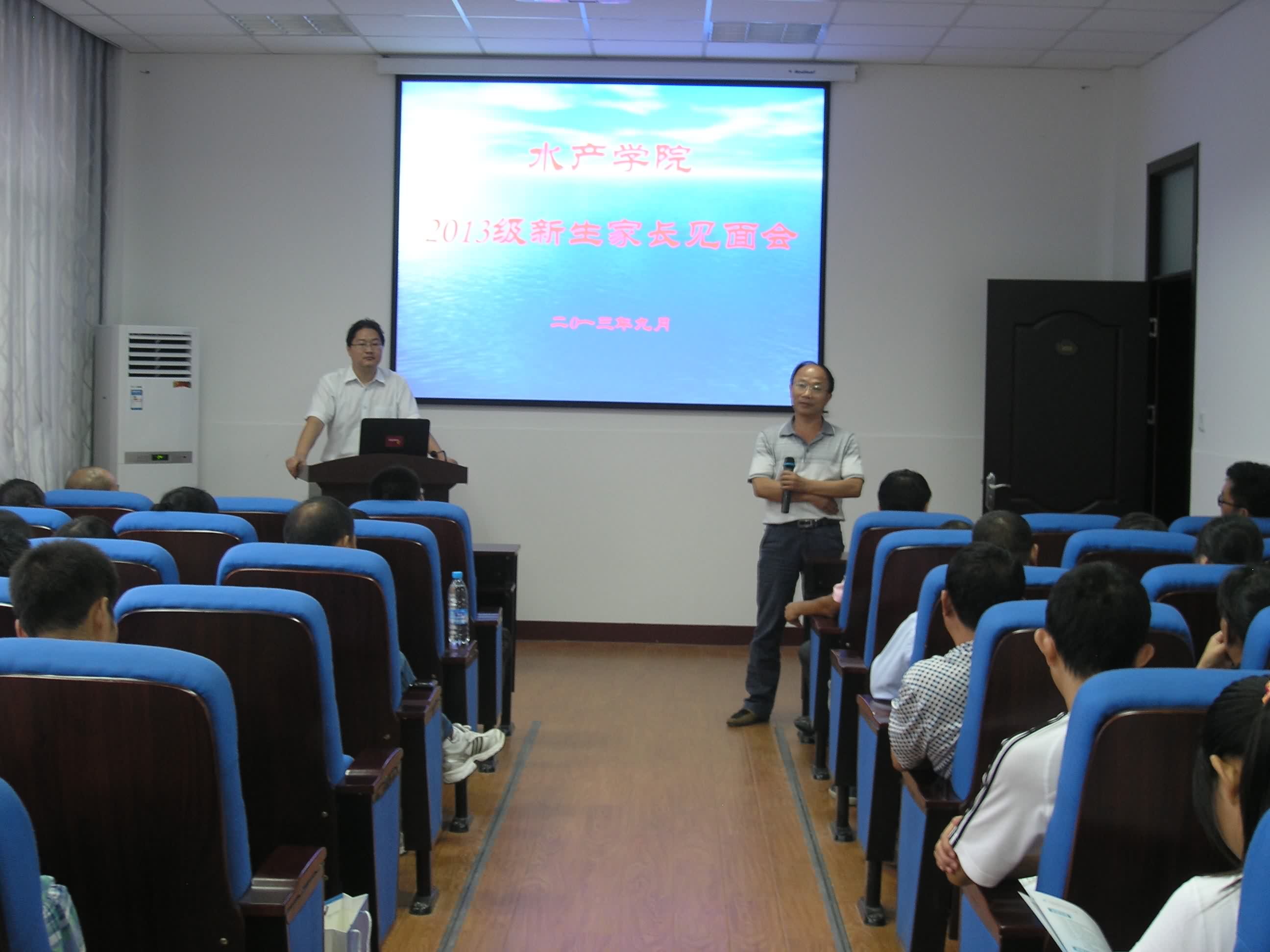 副院长李学军老师就水产学院的发展历史、专业设置、师资力量、实习实践等方面向与会家长进行介绍。李保华副书记就学生管理、奖学金、助学金、助学贷款、学院设置的奖助学金等方面进行了介绍。