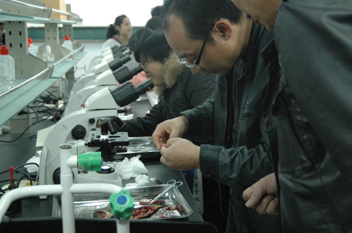 培训共安排了6场主题报告。分别是:张西瑞局长“河南省水产业发展现状及对策分析”、王飞站长“河南省水产推广存在的主要问题”、聂国兴院长“中国水产养殖业、水产饲料工业与水产品安全”、李学军副院长“水产新品种引进与挖掘”、孔祥会副院长“鱼类病害防控及当前面临的挑战”、张建新博士“科技论文写作与数据统计分析”。培训班还开设了3个学时的“鱼病的检查与诊断”实验课,组织全体学员参观了生物标本馆。