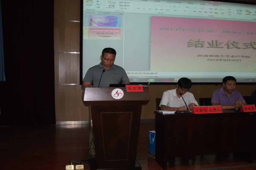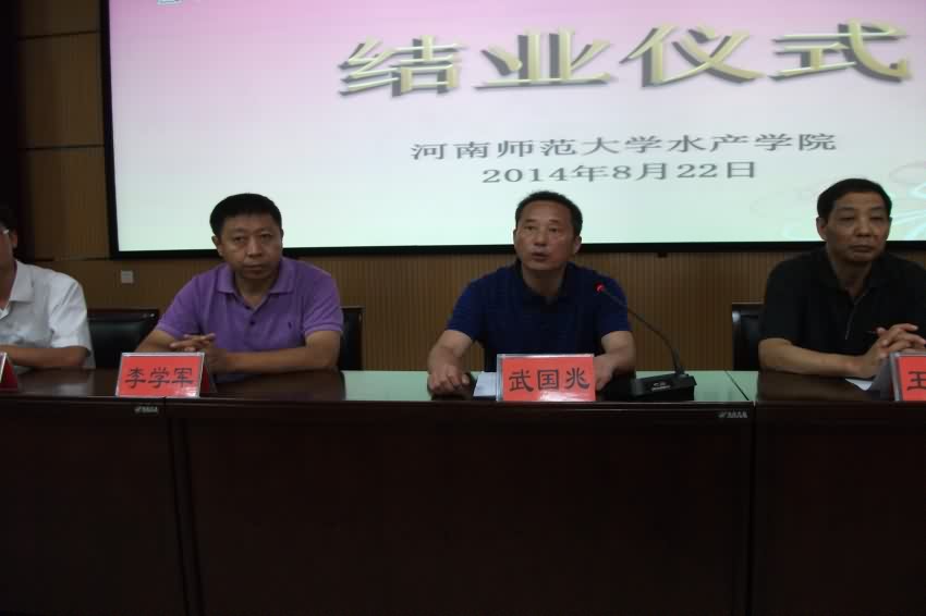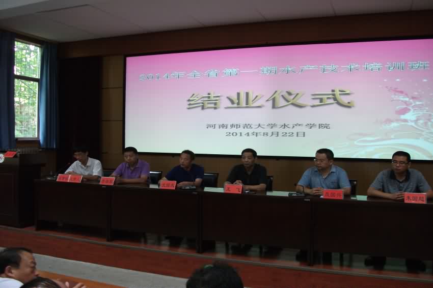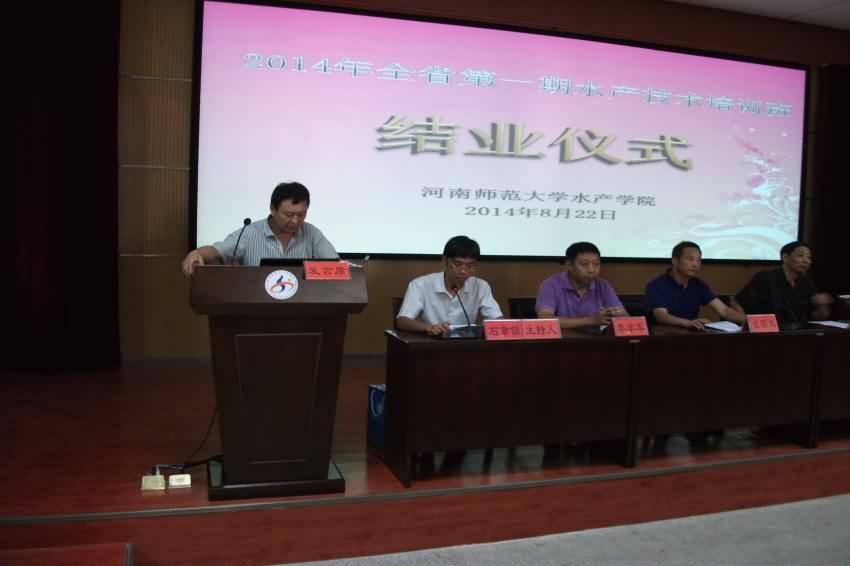 8月22日11:00,培训班举行了结业仪式,结业仪式由省水产局石章锁科长主持。王飞站长、武国兆副局长、聂国兴院长、李学军副院长参加了结业仪式。聂国兴院长在发言中表示为地方社会提供服务是水产学院的使命和责任,作为培训单位,水产学院将尽最大力量为各项目县(区)提供技术支持和服务,同时建好、管好水产培训信息网,畅通信息渠道;学员代表,潢川县水产局副局长刘征和渑池县水产站站长卢伯承同志先后发言,他们表示:通过培训,学员们掌握了知识,拓宽了视野,提高了素质,明确了方向,促进了交流,增进了友谊;武国兆副局长对此次培训工作进行了全面总结,并对项目县(区)的相关工作进行了安排。