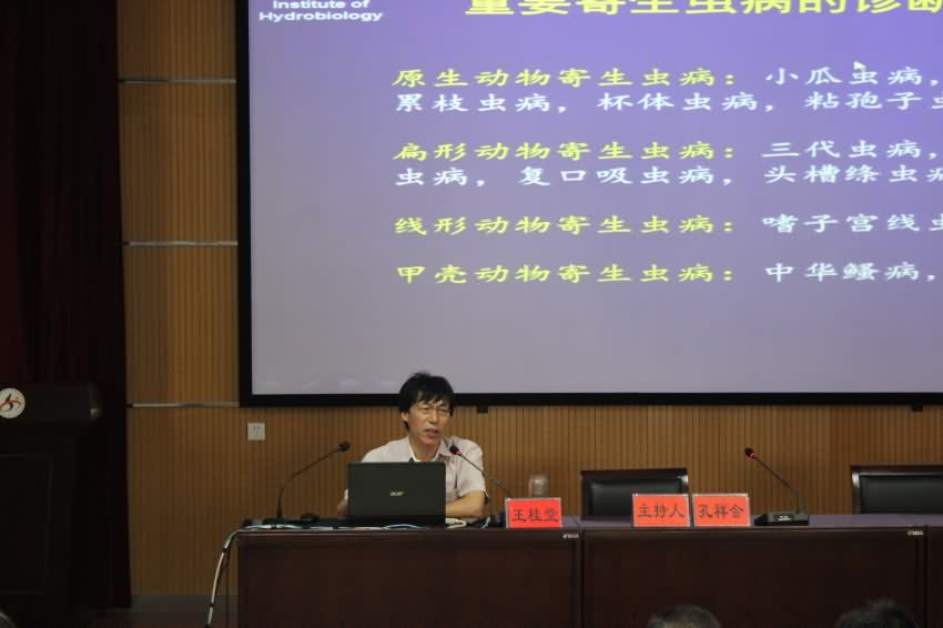 培训共安排了7场主题报告。分别是:张西瑞局长“现代水产建设政策解读”、中国科学院水生生物研究所王桂堂研究员“鱼类寄生虫病诊断与生态防治”、河南省水产技术推广站王飞站长“现代水产技术推广理论、方法、模式”、河南省水产科学研究院李治勋院长“渔业科技现状及发展前景”、水产局陈会克副局长“渔业安全生产管理”、孔祥会副院长“鱼病防控面临的挑战和生态防病的重要性”、朱国超老师“办公软件使用”。培训班还开设了10个学时的“鱼病检测及装片制作”实验课。