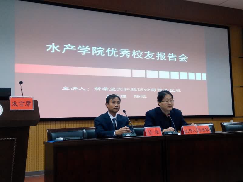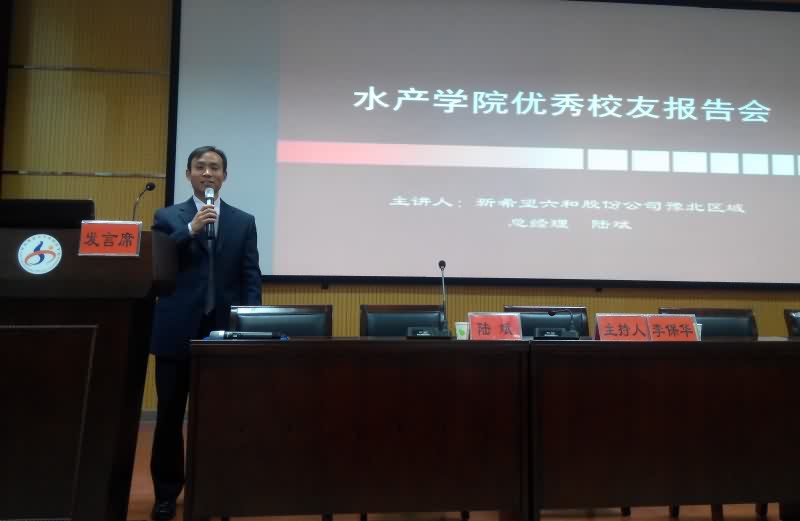 11月13日下午,我院优秀校友、96届淡水渔业专业毕业生、新希望六和股份公司豫北区域总经理陆斌在外国语学院报告厅与全院学生分享了自己的求学经历和成功经验,共话青年成长成才。报告会由院党总支副书记李保华主持。