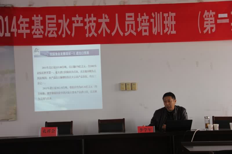 2014年11月26日,应长垣县农业局邀请,水产学院聂国兴院长、李学军副院长、孔祥会副院长一行3人,赴长垣县对20余个水产养殖示范户进行了养殖技术培训。