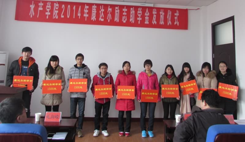 2015年1月27日上午,水产学院在学院202会议室举行2014年康达尔励志助学金发放仪式。河南康达尔农牧科技有限公司毛向嵘总经理,研究生工作部千卫星部长,水产学院党总支书记彭富旗老师,院长聂国兴老师,副院长李学军老师出席会议,20名受资助学生、各年级学生代表共60余人参加了本次发放仪式。仪式由院党总支副书记李保华老师主持。