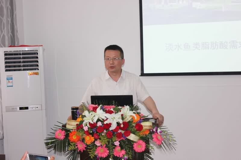 吉红教授首先介绍脂肪酸的种类和在淡水鱼类营养中的功能,以及淡水鱼类脂肪酸合成途径的最新进展,总结出淡水鱼类必需脂肪酸是碳链为18的脂肪酸;接着,吉红教授结合近几年自己的研究实例,详细讲解了短链、中链和长链非必需脂肪酸在淡水鱼类生长中的作用,并阐释了高不饱和脂肪酸(HUFA)降低草鱼脂质蓄积的细胞学和分子生物学机制;随后,吉红教授介绍了中国养殖业在大量依赖进口鱼粉情况下,如何获取适宜的脂肪酸的问题?并列举花椒籽、蚕蛹、黑水虻和微藻等几种可部分替代鱼粉的原料及其脂肪酸组成。最后,吉红教授与现场的师生进行了交流和互动,耐心回答了师生提出的问题。吉红教授的报告内容详实,与会师生受益匪浅。