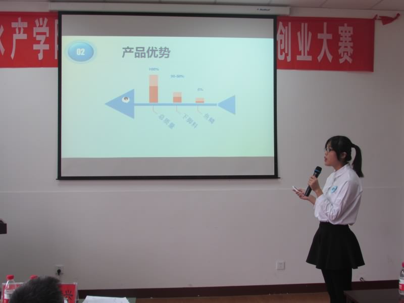 本次比赛分为纸上风云、创业演说、现场答辩三个环节。在比赛中,各组代表用精美的PPT展示了他们创业思路。最终,“鳞家女孩”团队的“鱼鳞动起来”赢得了评委的一致肯定,并获得特等奖,“水质智能处理系统”和“天然虾青素的销售”两支队伍获得一等奖,其余三支队伍获得二等奖,四支队伍获得三等奖。
