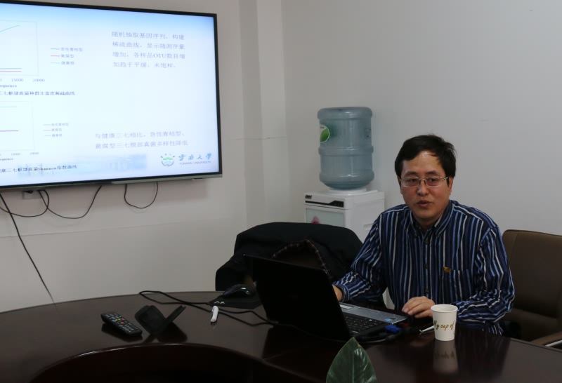 12月11日上午,应我院邀请,云南大学生命科学学院,云南微生物研究所赵立兴研究员来我院作了题为“三七土壤及内生微生物群落组成”的学术报告。报告会在二楼会议室举行,水产学院教师和研究生参加了报告会,会议由院长聂国兴教授主持。