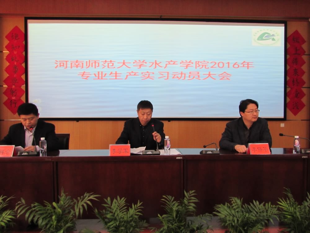 4月5日上午,水产学院2016年生产实习动员大会在外国语学院报告厅举行。院党总支副书记李保华、副院长李学军出席了动员会。参加专业生产实习的2013级学生及各实习队指导老师参加了动员会。会议由副院长孔祥会主持。