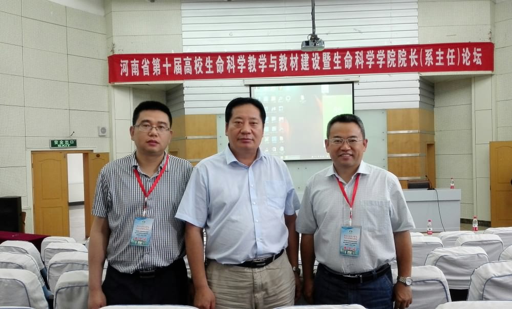 2016年5月7日-5月8日,河南省第八届高校生命科学教学与教材建设研讨会暨生命科学学院院长(系主任)论坛在河南省濮阳市召开。本次会议由科学出版社主办、濮阳职业技术学院承办,共有来自省内外33所高校、出版社及企业的148位代表参会。我院侯进怀书记、聂国兴院长、朱国超老师参加了此次会议。