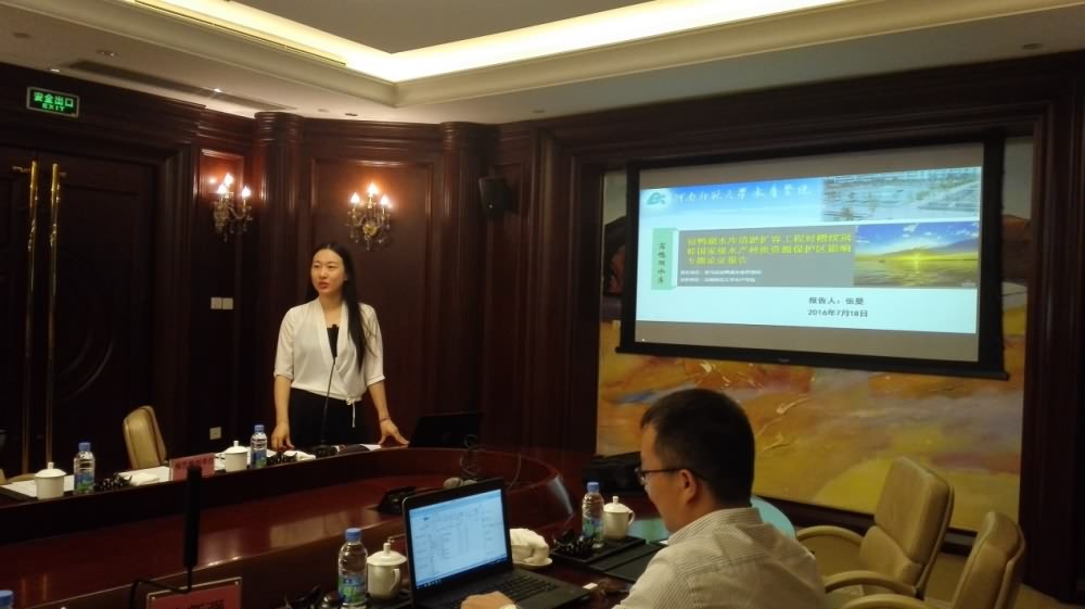 评审组专家首先听取了业主单位对工程情况的介绍;随后,我院的张曼博士代表课题组进行了项目的汇报;评审组专家经认真讨论质询,对编制的《论证报告》和汇报工作给予了较高的评价,认为《论证报告》编制规范,依据充分,基础资料完备,符合《建设项目对国家级水产种质资源保护区(淡水)影响专题论证报告编制指南(试行)》及相关要求,评审组专家一致同意《论证报告》通过审查。