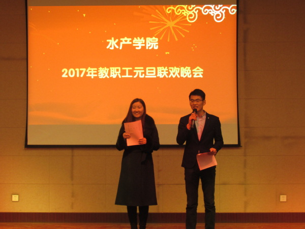 整场晚会精彩不断,高潮迭起。侯书记演唱的《为了谁》歌声传情,感人肺腑;朱命炜老师的二胡独奏《牧羊曲》感染力强,意境深远;育种团队和渔业与环境保护团队带来的小合唱《朋友》、《感恩的心》,传递了学院相亲相爱的深厚情感;歌曲《super star》、《水手》、《浪子心声》等情动全场,感人至深。相声《学富五车》幽默风趣,口技、方言、歌曲贯穿其中,为全体老师送来了欢乐,现场气氛热烈。