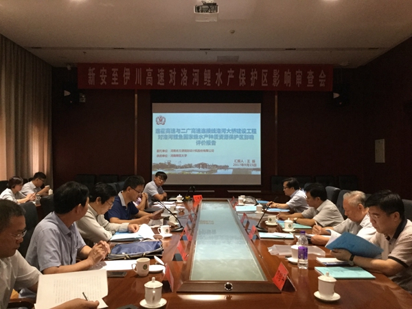 2017年9月15日,农业部渔业渔政管理局在北京主持召开了《S304濮阳白堽黄河公路大桥及接线工程对黄河鲁豫交界段国家级水产种质资源保护区影响专题论证报告》和《连霍高速与二广高速连接线(新安至伊川高速)洛河特大桥建设工程对洛河鲤鱼国家级水产种质资源保护区影响专题论证报告》的评审会。这两个论证报告由我院“水产生物增养殖科研团队”和“渔业资源与环境科研团队”组织的课题组编制完成。参加会议的有农业部渔业渔政管理局资环处姜波副处长、河南省农业厅水产局孙国勇副局长及濮阳市公路管理局、濮阳市水利局、洛阳市交通局、洛阳市农业局、新安至伊川高速项目筹备组和河南省交通规划设计研究院等单位的代表;专家组由中国水产科学研究院资环中心李继龙研究员、李应仁主任、中国农业生态保护协会渔业分会王希华教授、中国水产科学研究院长江水产研究所刘绍平研究员和黄河水产研究所张建军研究员组成。我院李学军副院长带领课题组部分成员参加了会议。