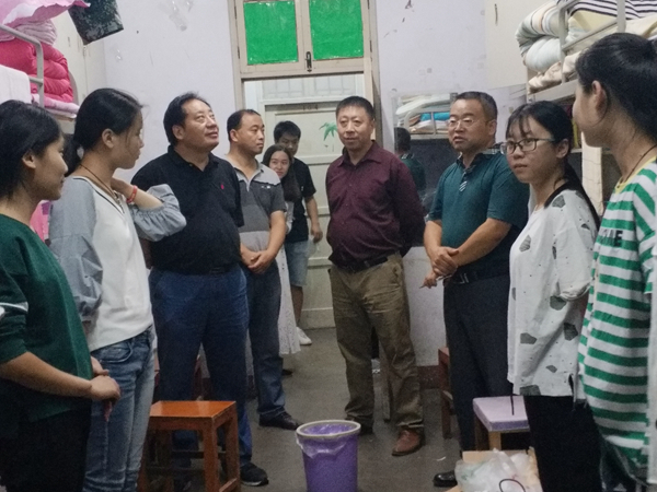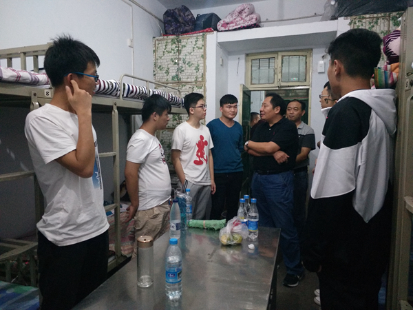 9月9日晚,我院党总支书记侯进怀,院长聂国兴,副书记李保华,副院长李学军、张建新以及2017级新生辅导员谢娜走访慰问了新生寝室,并对大一新生的到来表示热烈欢迎。