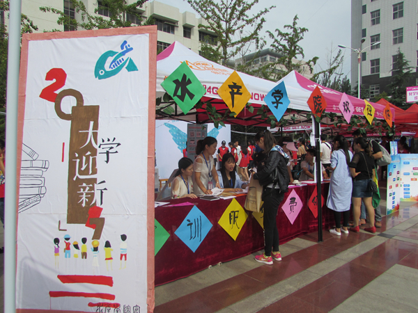 9日上午,迎新工作的高峰期,迎新志愿服务如火如荼的进行。校长常俊标、副校长陈广文、李雪山、马治军等领导来到迎新点欢迎新同学的到来,同时不厌其烦地回答新生及其家长询问的各种问题。一位南方的家长表示,一开始担心小孩适应不了北方的生活,但看到学校领导和志愿者们热情的服务,积极帮助同学的态度,对小孩以后的大学学习生活充满期待。