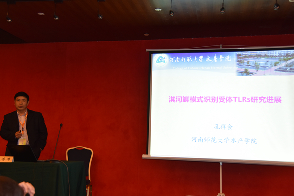 我院孔祥会教授带领水产动物医学团队教师8人和研究生12人参加会议,参会代表分别在水生动物免疫学组、水生动物细菌病组、水生动物病毒病/寄生虫病组、水生动物疾病防治及药理组4个分会场进行口头报告20场并取得较好反响。其中孔祥会教授做了题为“淇河鲫模式识别受体TLRs研究进展”的报告并主持水生动物免疫学分会场学术报告。
