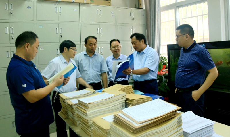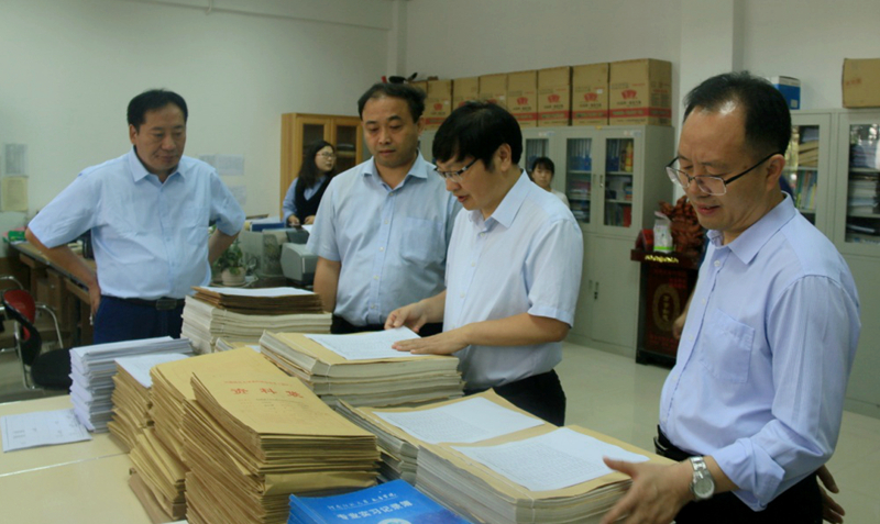 李学志一行首先在学院综合办公室现场查看了本科教学评估材料的准备情况,详细翻阅学院试卷、专业实习、毕业论文、教学管理制度等教学相关材料。之后,在215会议室,张建新副院长向与会领导简要介绍了学院专业和学科建设情况,与会人员对教学审核评估的准备工作进行了交流和讨论。李校长一行对我院前期的准备工作给予充分肯定,建议进一步突出学院在人才培养、规章制度的建设工作,继续补充完善教学评估相关的支撑材料,为下周即将开始的本科教学审核诊断评估做好充分准备。