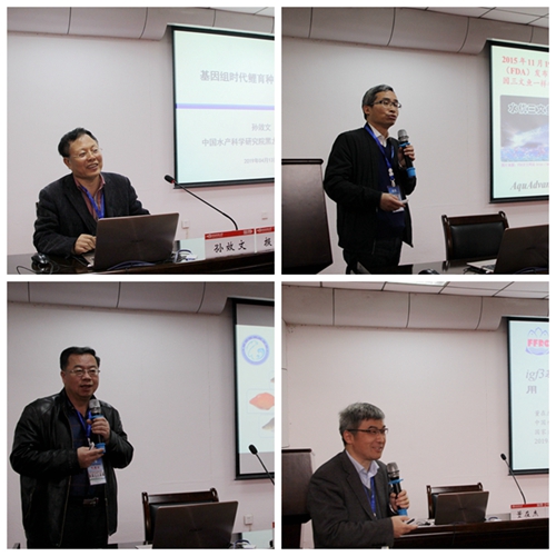 开幕式后,桂建芳院士、孙效文研究员、胡红浪副站长、胡炜研究员、中国水产科学研究院黑龙江水产研究所石连玉研究员和淡水渔业中心董在杰研究员分别作了“鱼类遗传育种技术的发展与创新”、“基因组时代鲤育种目标与策略”、“从鲤科鱼类看水产种业发展与进步”、“黄河鲤基因工程育种研究”、“中国鲤种质资源及其在新品种培育中的应用”和“igf3基因在鲤性腺发育中的作用”的大会报告;下午,又有7位专家、学者分别作了学术报告。