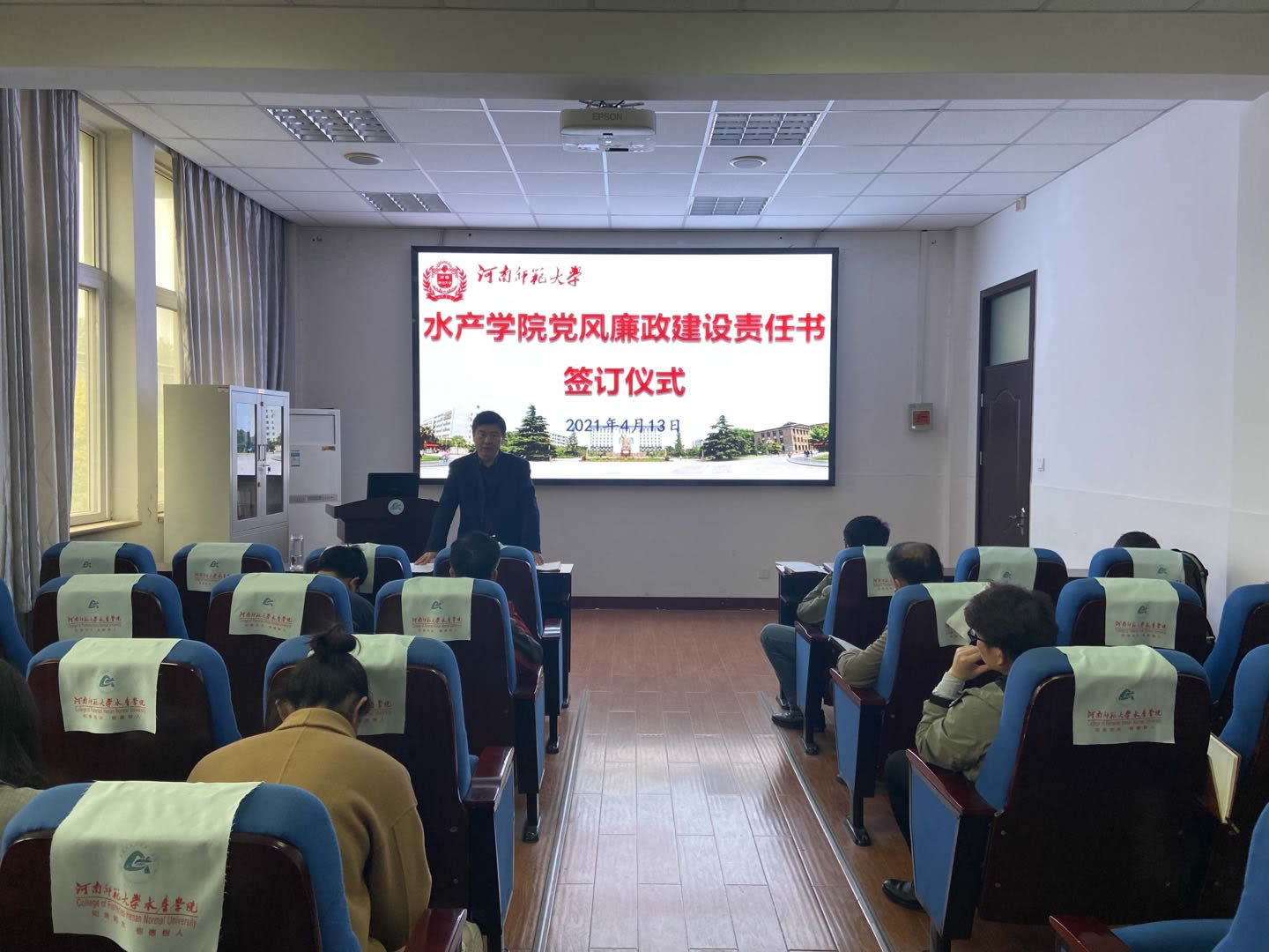 为进一步压紧压实党风廉政建设主体责任,推动全面从严治党纵深发展,根据学校纪委部署安排,2021年4月13日下午,水产学院在学院202会议室召开2021年度党风廉政建设责任书签订仪式,学院党政领导班子、科级以上干部参加,签订仪式由院党委书记孔祥会主持。