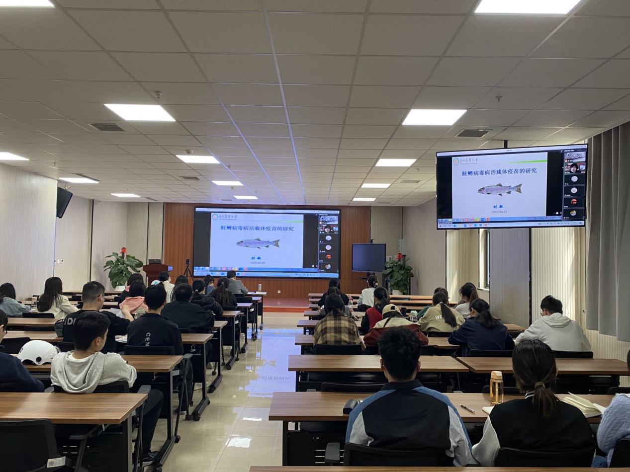 刘敏教授以“鲑鳟病毒病活载体疫苗的研究”为题,首先介绍了鲑鳟在世界水产养殖中的地位以及在中国的养殖现状,并指出我国食用的大西洋鲑主要依靠进口。随后,她指出病毒性病原如传染性胰腺坏死病病毒、传染性鲑鱼贫血病毒、传染性造血器官坏死病病毒等是危害鲑鳟健康养殖的主要威胁,且依靠疫苗防治该类疾病是非常有效、安全、绿色和低成本的防治手段。最后,刘敏教授又详细向大家介绍了其课题组在鲑鳟病毒重组活载体疫苗方面的研究思路和进展。