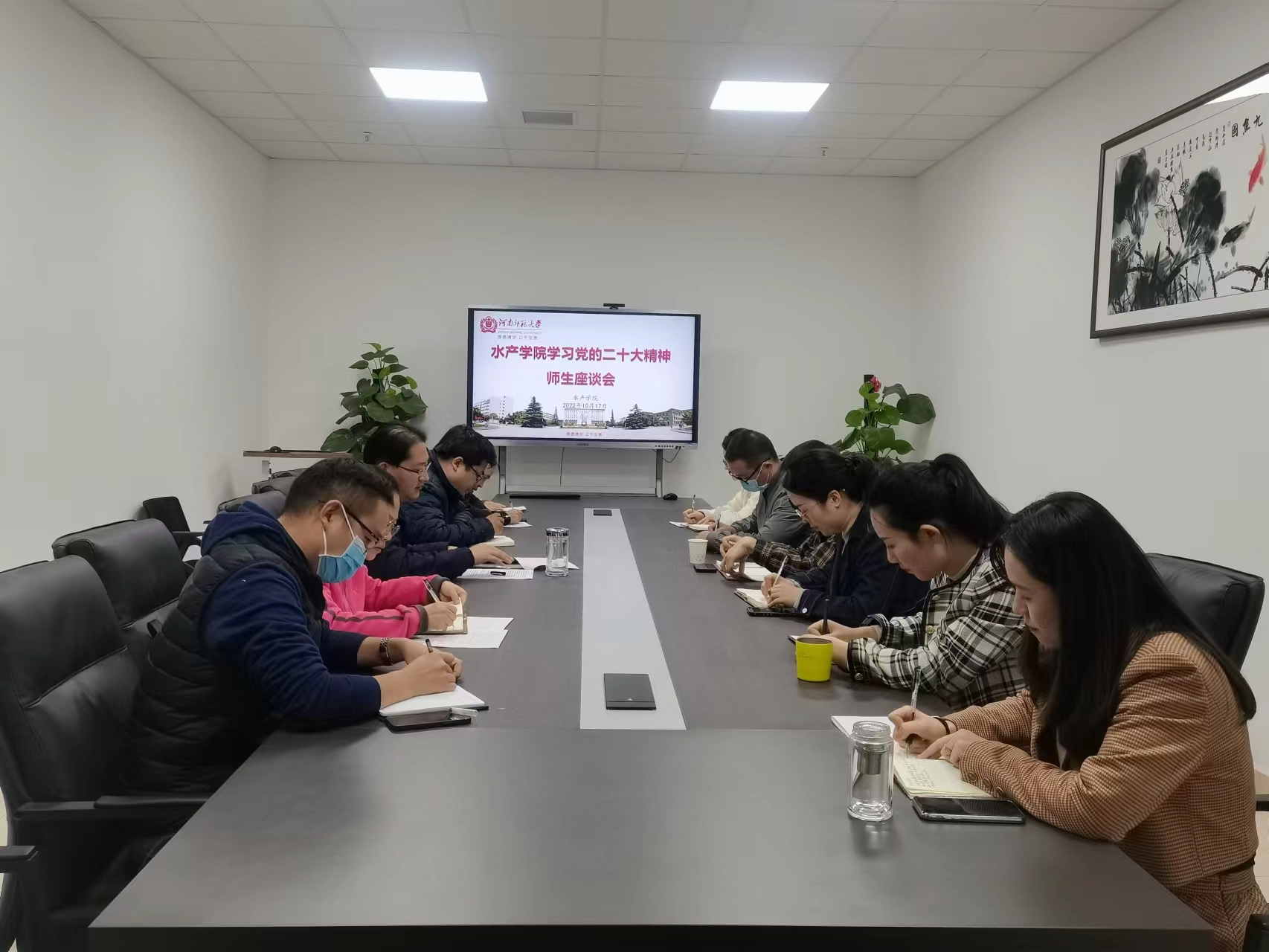 为深入学习贯彻党的二十大精神,切实把思想和行动统一到党的二十大精神上来,10月17日下午,水产学院在学院205会议室召开学习党的二十大精神师生座谈会。学院领导班子成员,党支部书记、系主任、教师及学生党员代表参加会议。座谈会由院党委书记李保华主持。