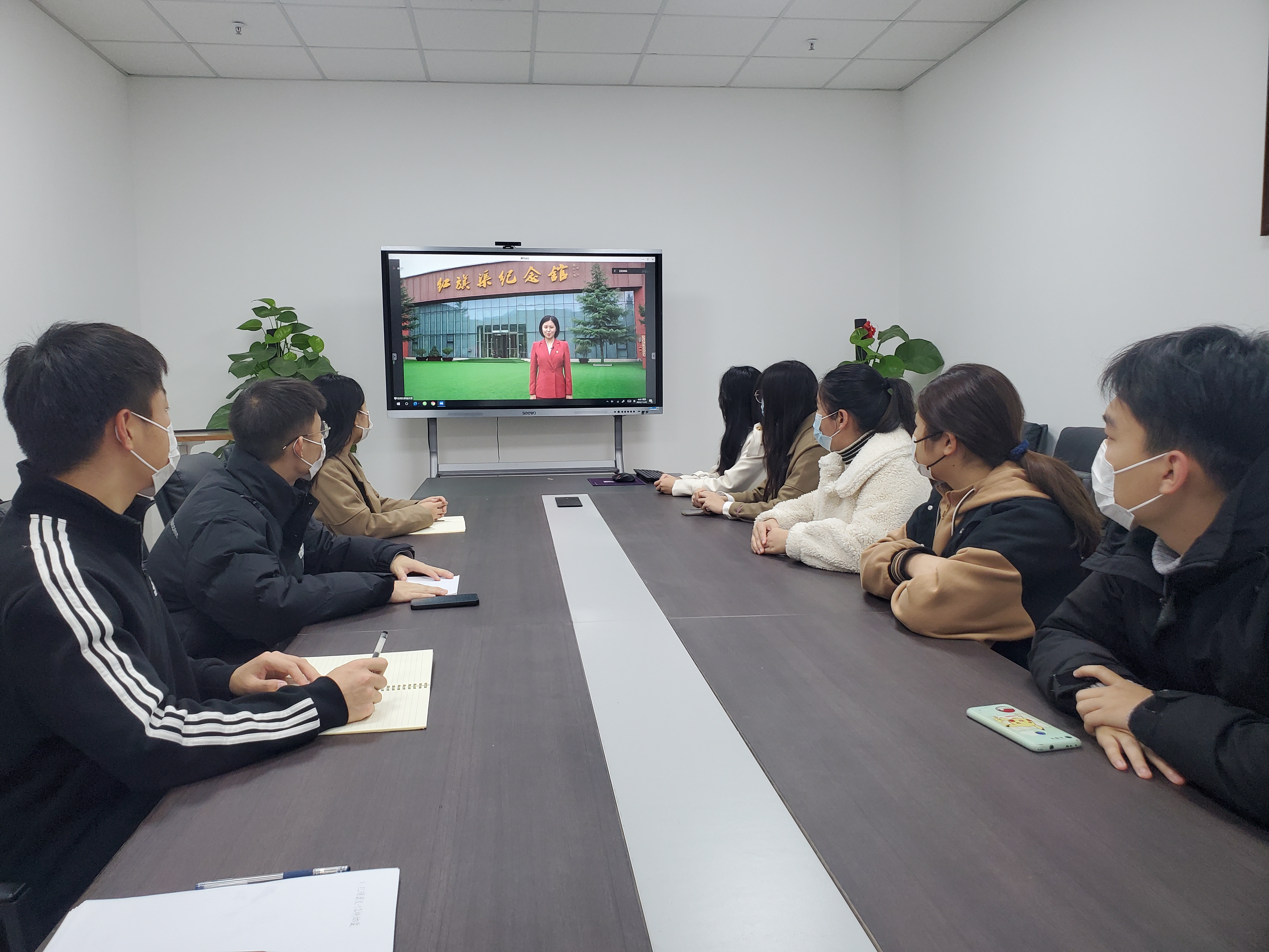 本次学习采用云视频直播方式,通过视频连线红旗渠干部学院培训部老师现场讲解红旗渠纪念馆、青年洞、红旗渠分水闸等重要红色基地,播放《震撼红旗渠》等纪念馆教学点短片,带领师生沿着习近平总书记的足迹,重温林州人民用勤劳的双手改变十年九旱、水贵如油落后面貌的感人故事,深刻感悟红旗渠“自力更生、艰苦创业、团结协作、无私奉献”的精神。