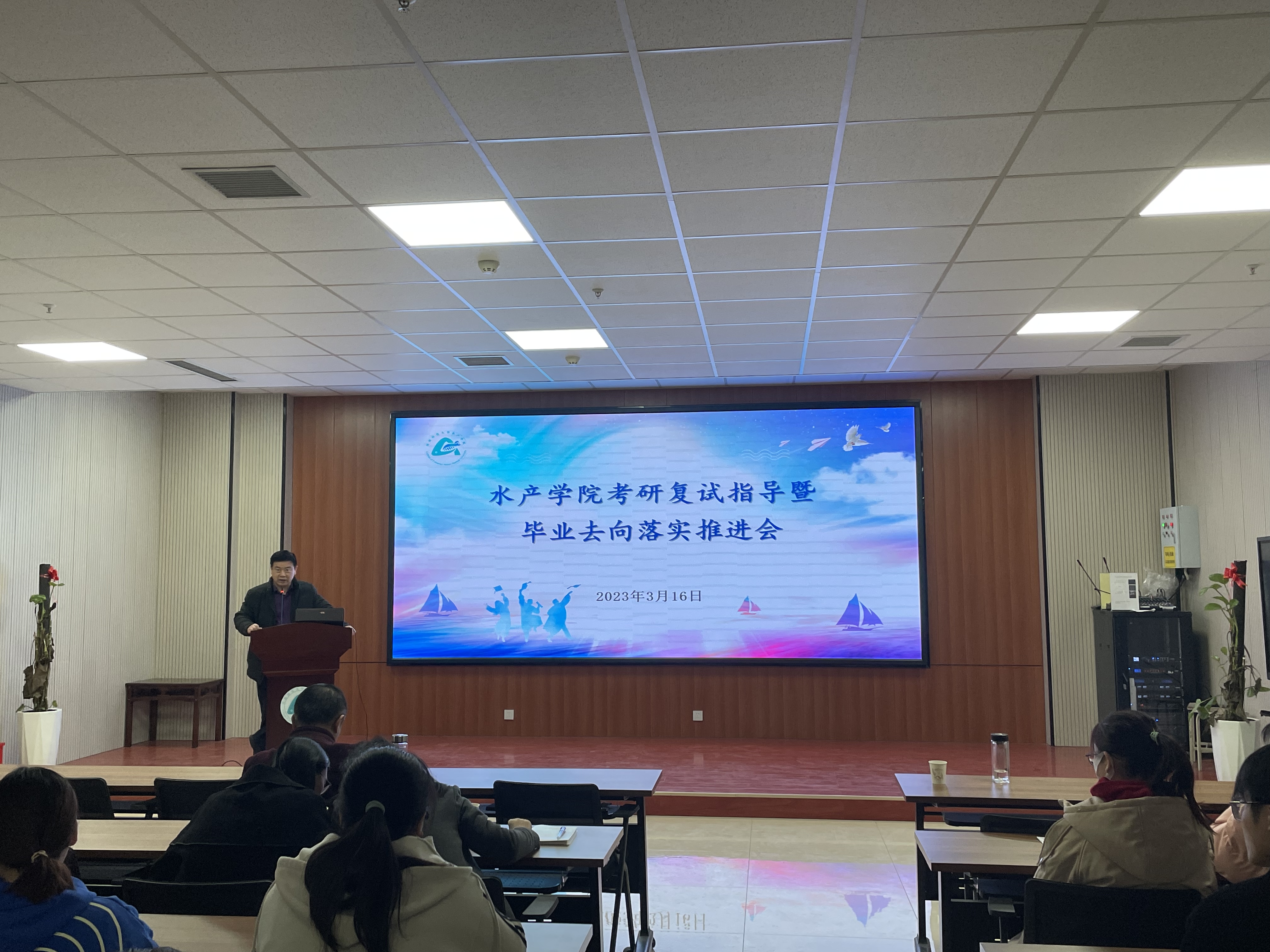 为提高2023届考研学生复试成功率,切实做好毕业生就业工作,3月16日上午,水产学院在综合实训楼203会议室举办2023年考研复试指导暨毕业去向落实推进会。学院部分领导、教师代表及2023届全体学生参加此次会议。会议由学院党委副书记张震主持。