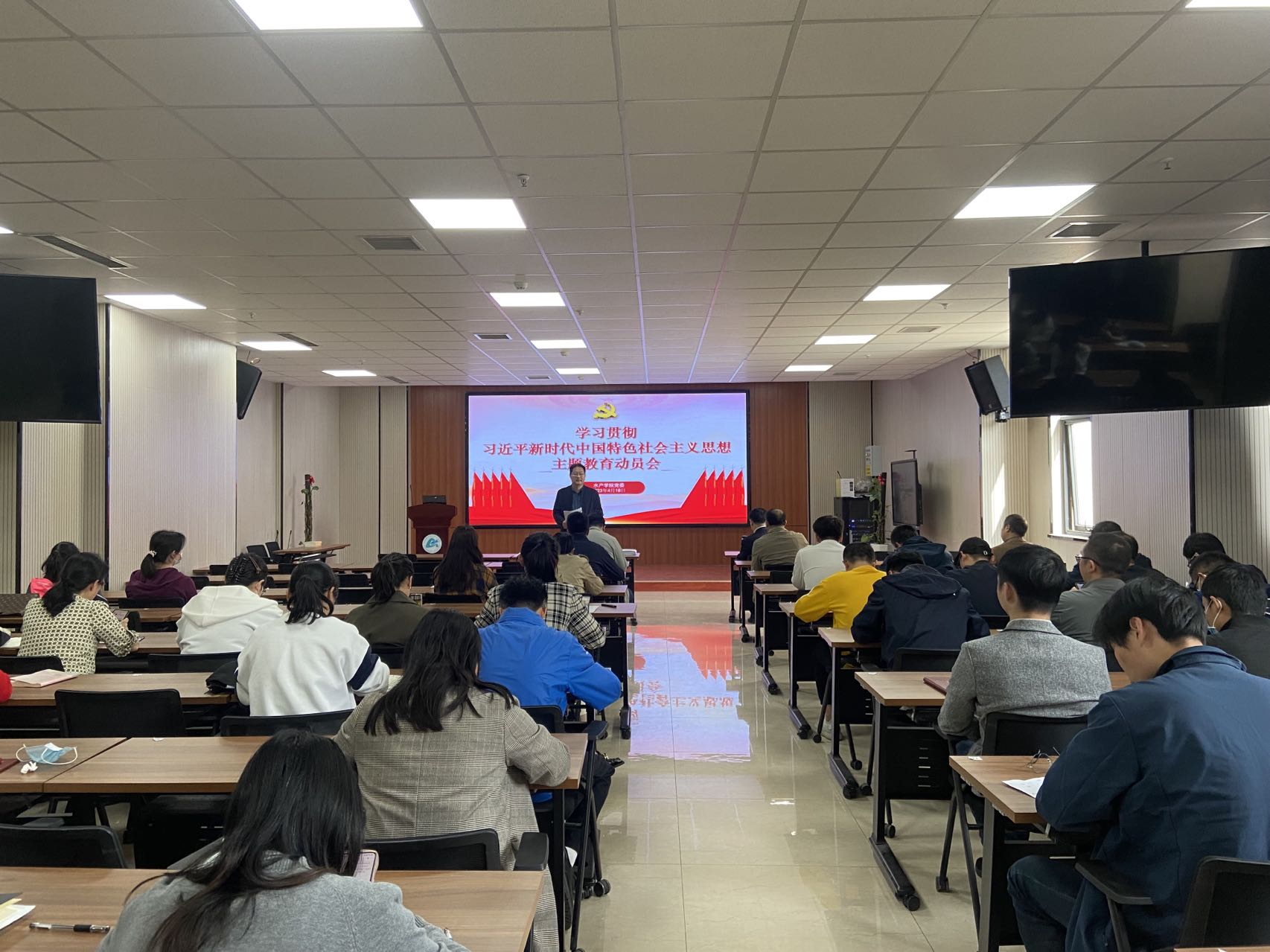 418日下午,水产学院在实训楼203会议室召开学习贯彻习近平新时代中国特色社会主义思想主题教育动员会。学院党政领导班子、全体教师党员参加会议。会议由院党委书记李保华主持。