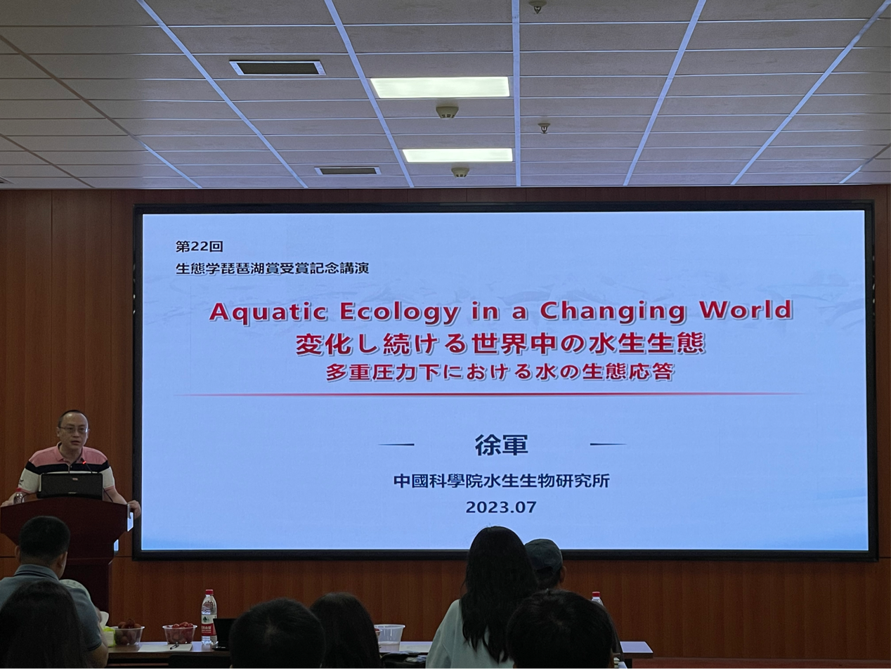 7月2日上午,中国科学院水生生物研究所徐军研究员应邀为我院师生作了题为“不断变化的水生生态系统”的学术报告。我院教师、研究生、本科生近100人聆听报告会,会议由张曼副教授主持。
