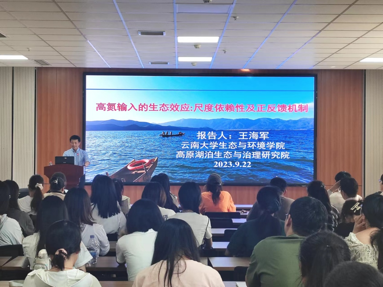 9月21日下午,云南大学王海军研究员应邀来我院讲学,在百年校庆之“范蠡学术讲堂”作了题为“高氮输入的生态效应:尺度依赖性及正反馈机制”的学术报告。我院教师、研究生、本科生120余人聆听了报告会,报告会由高云霓副教授主持。