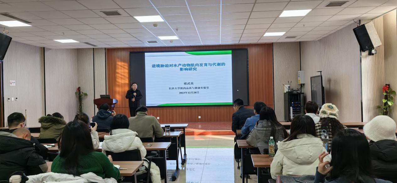 12月28日下午,长沙学院褚武英教授应邀来我院讲学,讲学报告在东区实训楼203会议室进行。水产学院教师、研究生和本科生共计80余人聆听报告。报告会由水产学院副院长孟晓林教授主持。