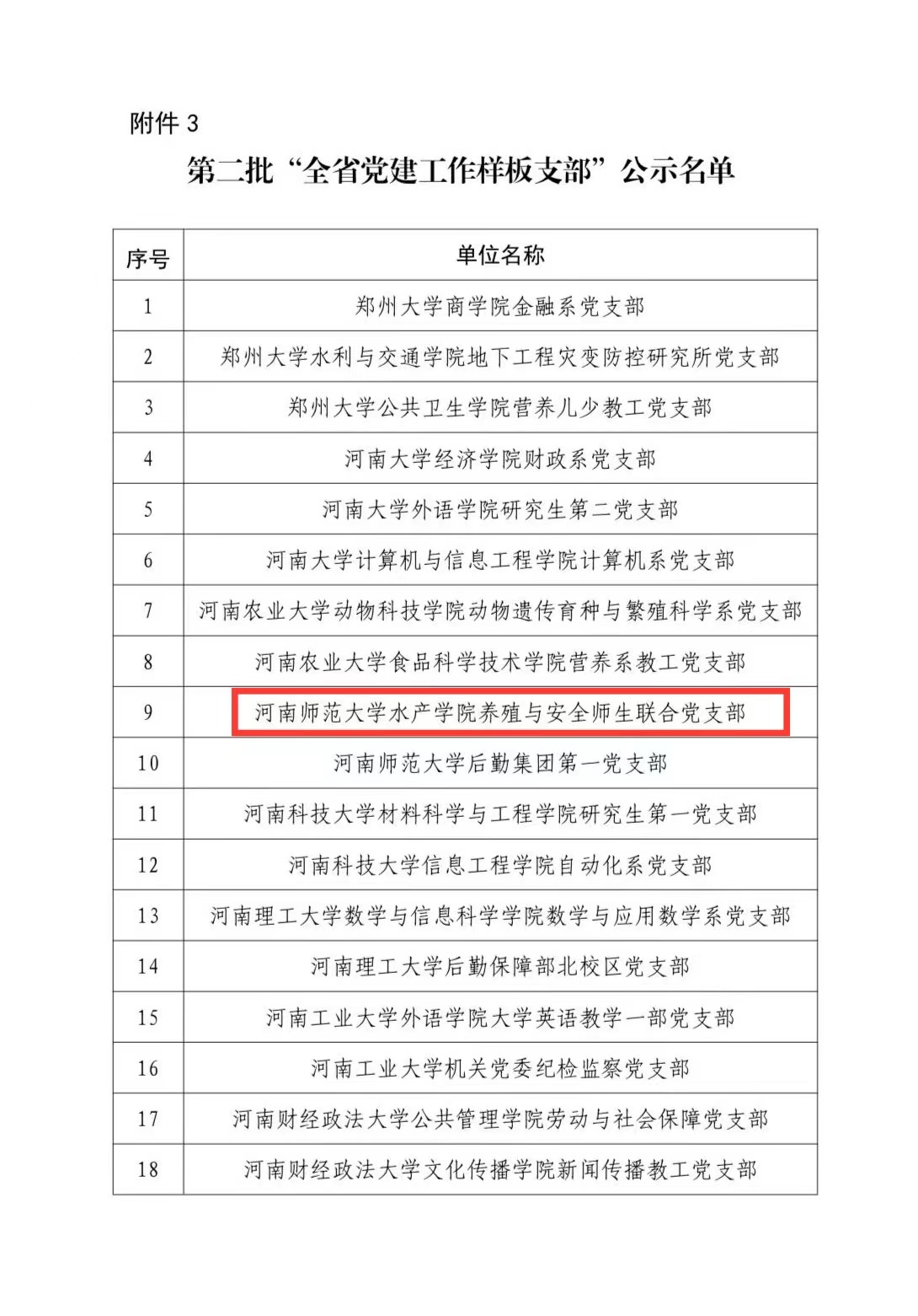 近日,河南省委教育工委公示的《关于开展第二批全省高校党建工作强基引领“三级联创”及“双带头人”教师党支部书记工作室评选结果》中,我院养殖与安全师生联合党支部成功入选第二批“全省党建工作样板支部”。这是我院基层党组织建设取得的一项优异成绩,也是对我院党建工作的充分肯定。