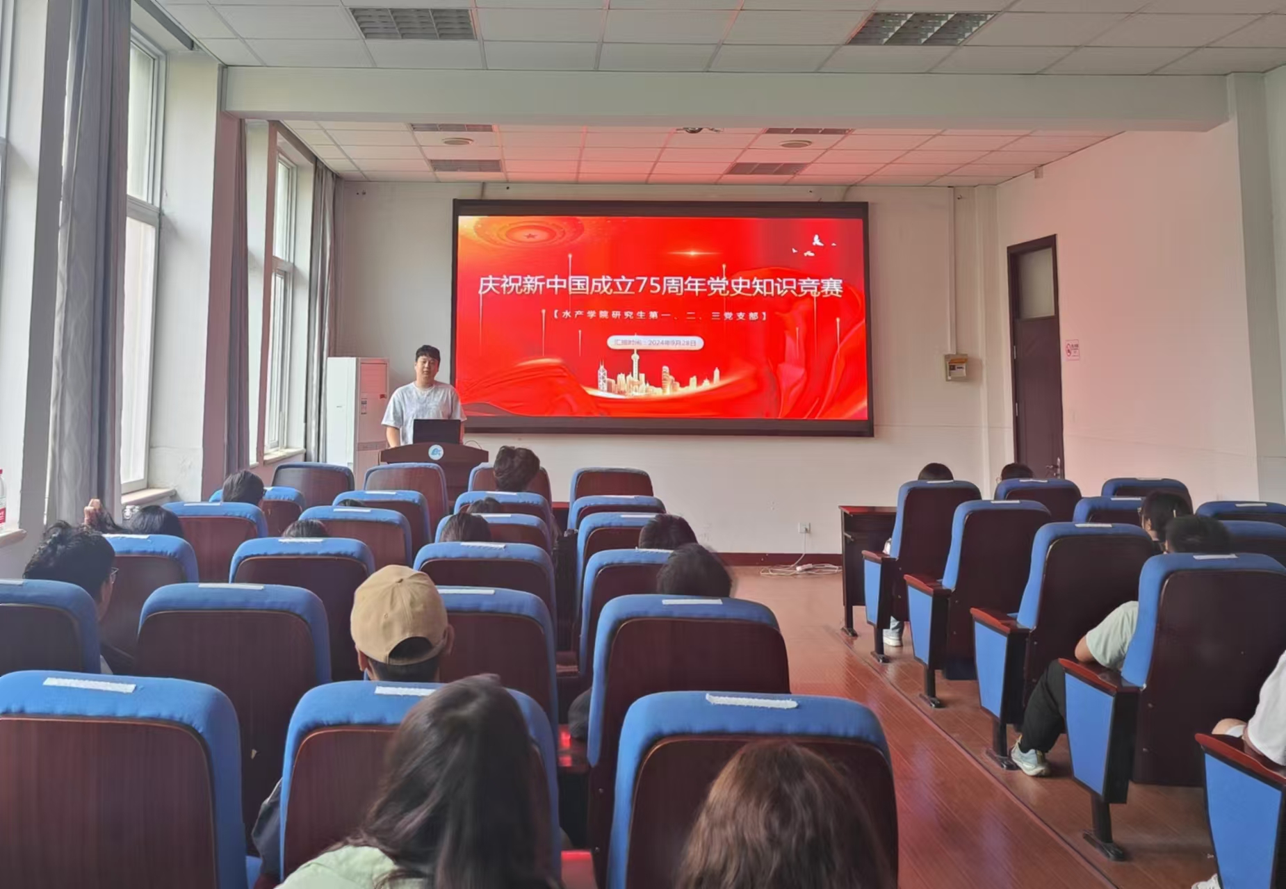 为热烈庆祝中华人民共和国成立75周年,推动党史学习教育常态化长效化,引导广大青年学子知史爱党、知史爱国,赓续红色基因,厚植爱国情怀,9月28日,水产学院在水产楼202会议室成功举办“庆祝中华人民共和国成立75周年”党史知识竞赛活动。