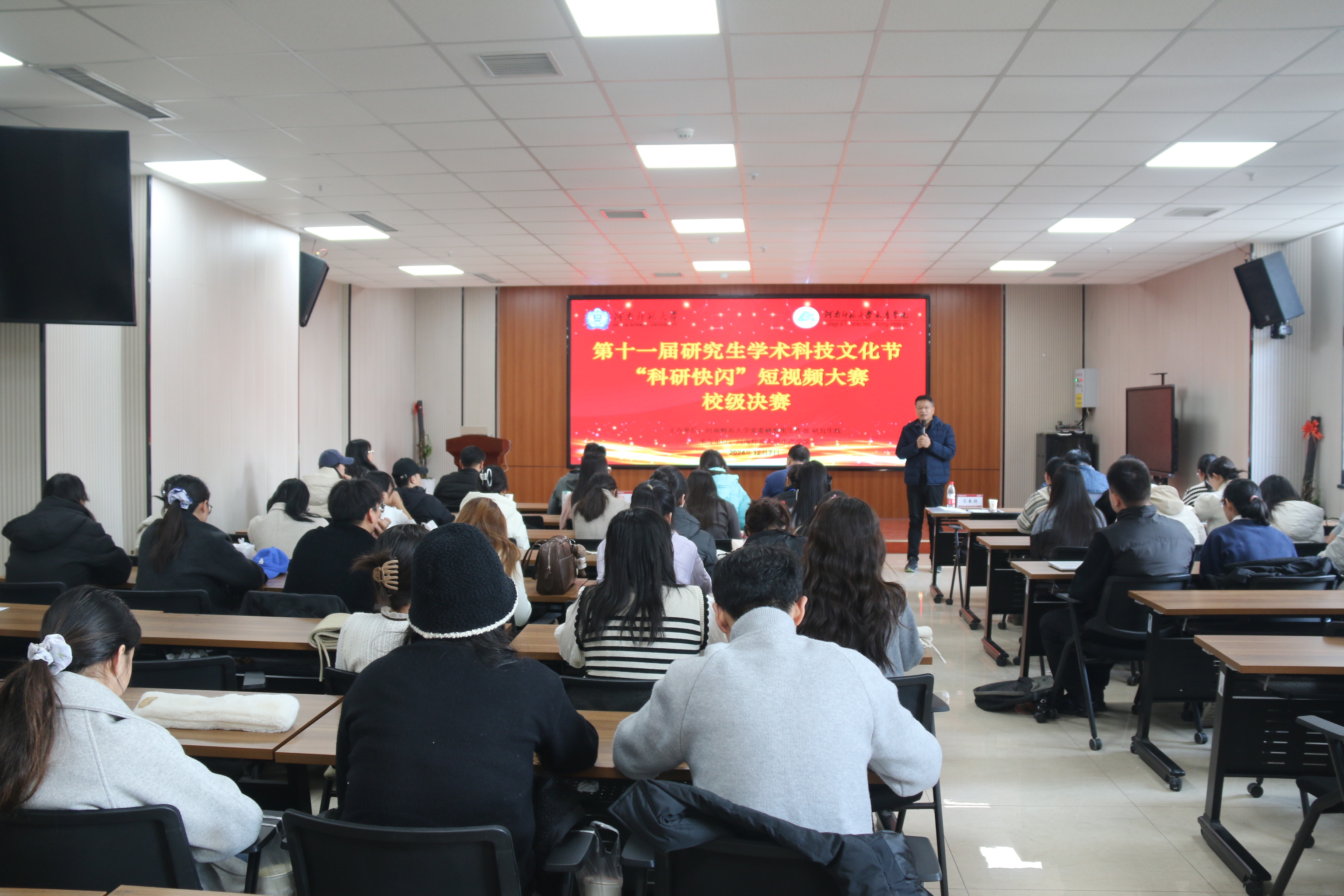12月7日,由校党委研究生工作部、研究生院主办,水产学院承办的第十一届研究生学术科技文化节——“科研快闪”短视频大赛决赛在实训楼203会议室举办。校党委研究生工作部、水产学院相关负责人以及来自各个学院的研究生辅导员、参赛选手参加了此次活动。