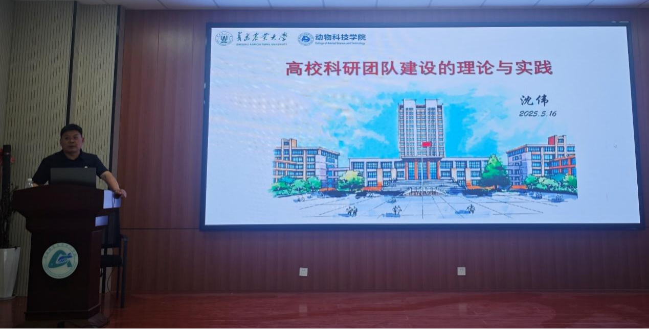 5月16日,青岛农业大学动物科技学院院长沈伟教授应邀来我院作学术报告。报告会在实训楼203会议室举行,副院长张建新主持会议。