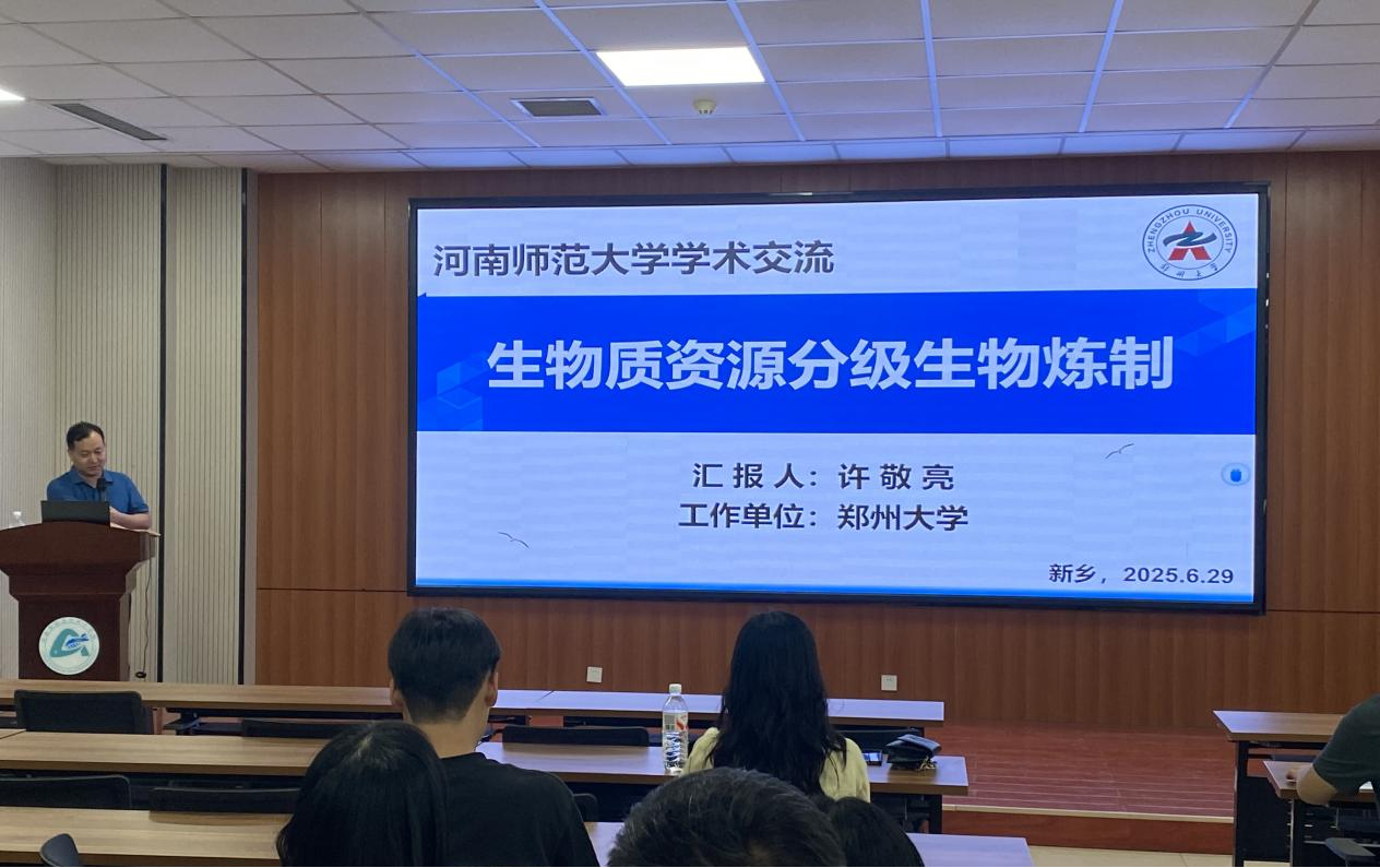 6月29日下午,郑州大学许敬亮教授应邀来我院作题为《生物质资源分级生物炼制》的学术报告。报告会在实训楼203会议室举行,张建新副院长主持会议,学院50余名教师和研究生参加报告会。