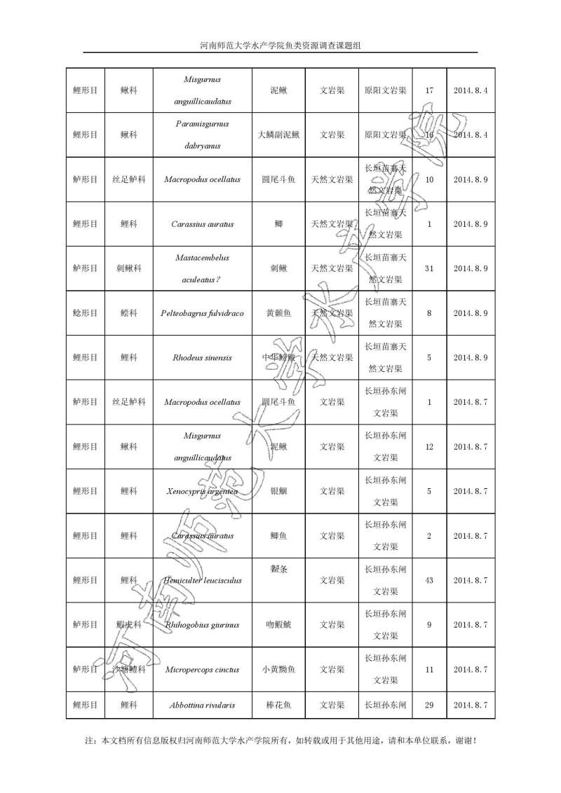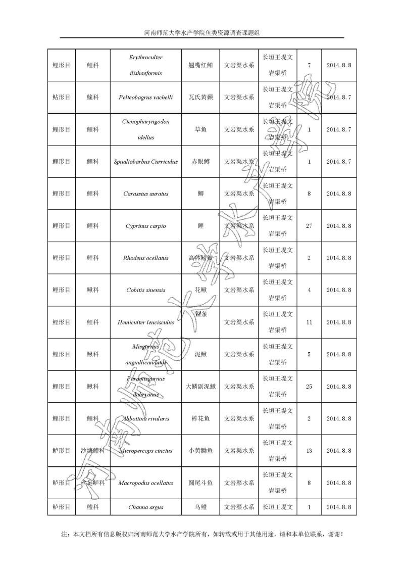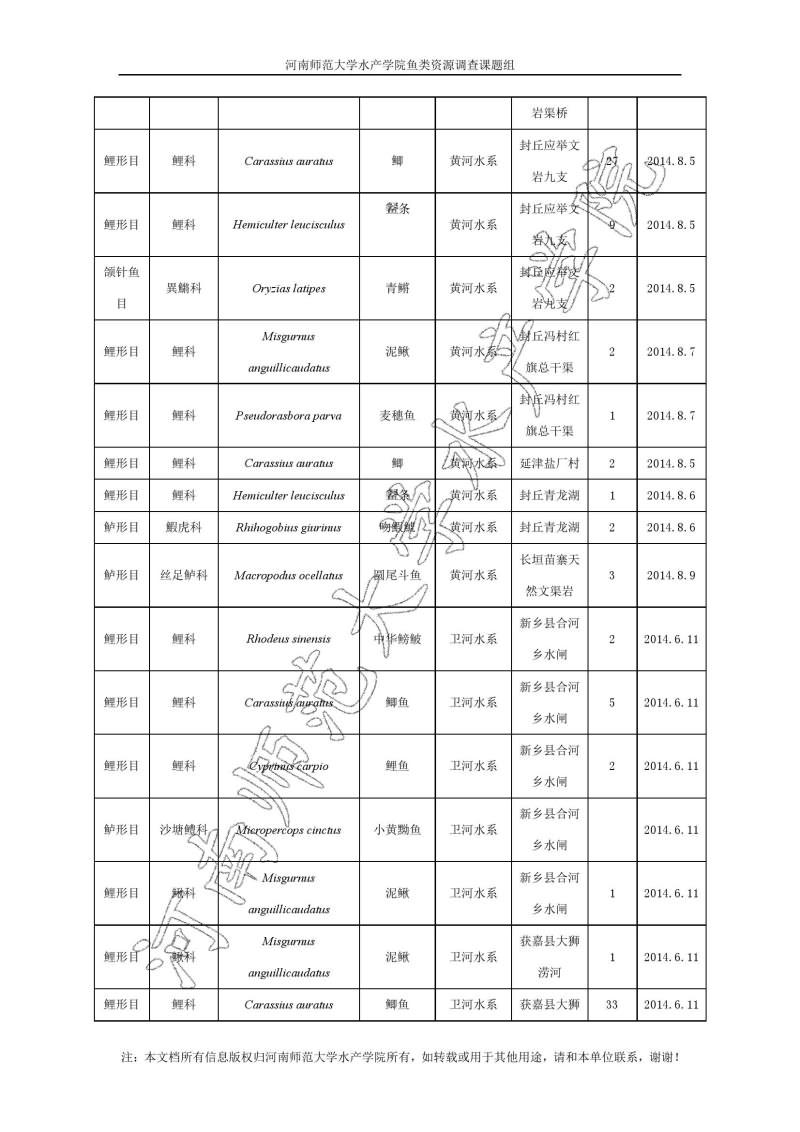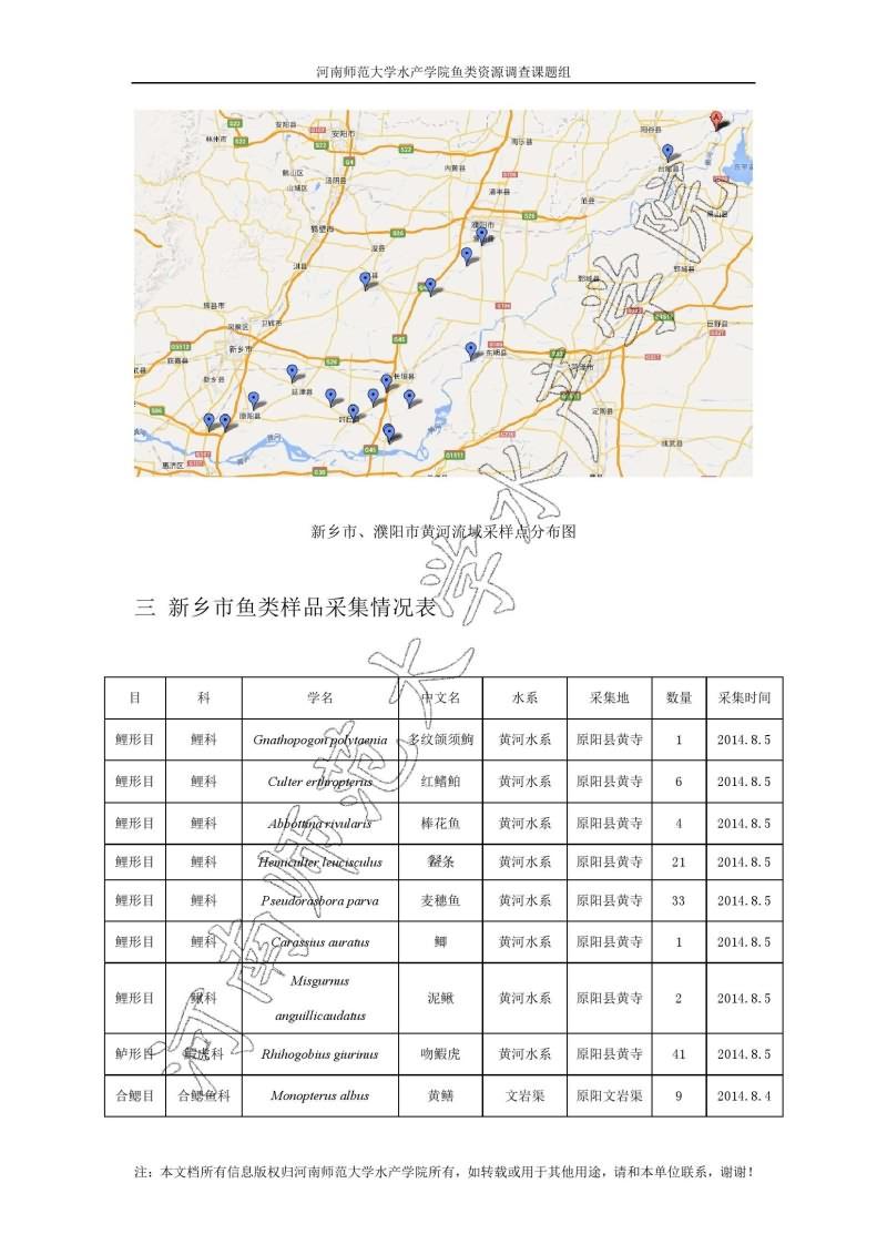 新乡地区鱼类调查结果