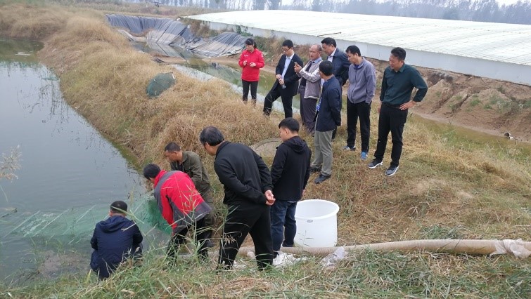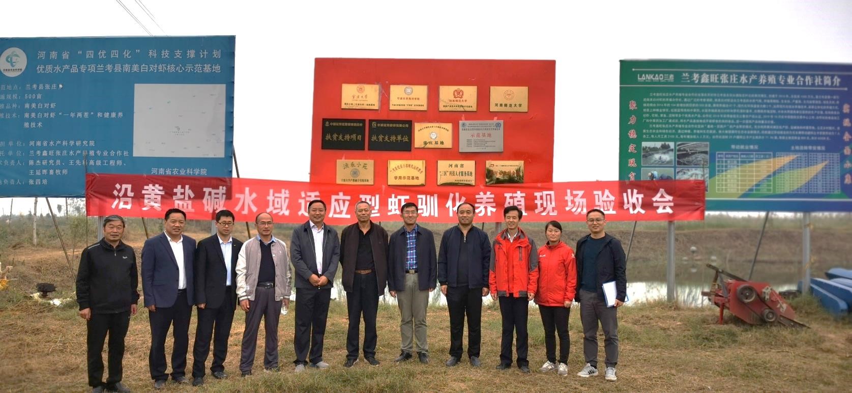 2020年10月10日,由中国水产科学研究院黄海水产研究所和我团队合作完成的国家重点研发计划“蓝色粮仓科技创新”专项子课题——低碱度适应型虾移殖驯化与高效生态养殖技术相关工作在兰考鑫旺张庄水产养殖专业合作社通过了专家现场验收。验收组由青岛农业大学、河南农业大学、河南省水产技术推广站、河南省水产科学研究院和兰考水产技术推广站等单位有关专家组成。验收会由兰考县农业农村局副局长朱卫东主持,我院张建新副院长出席验收会。