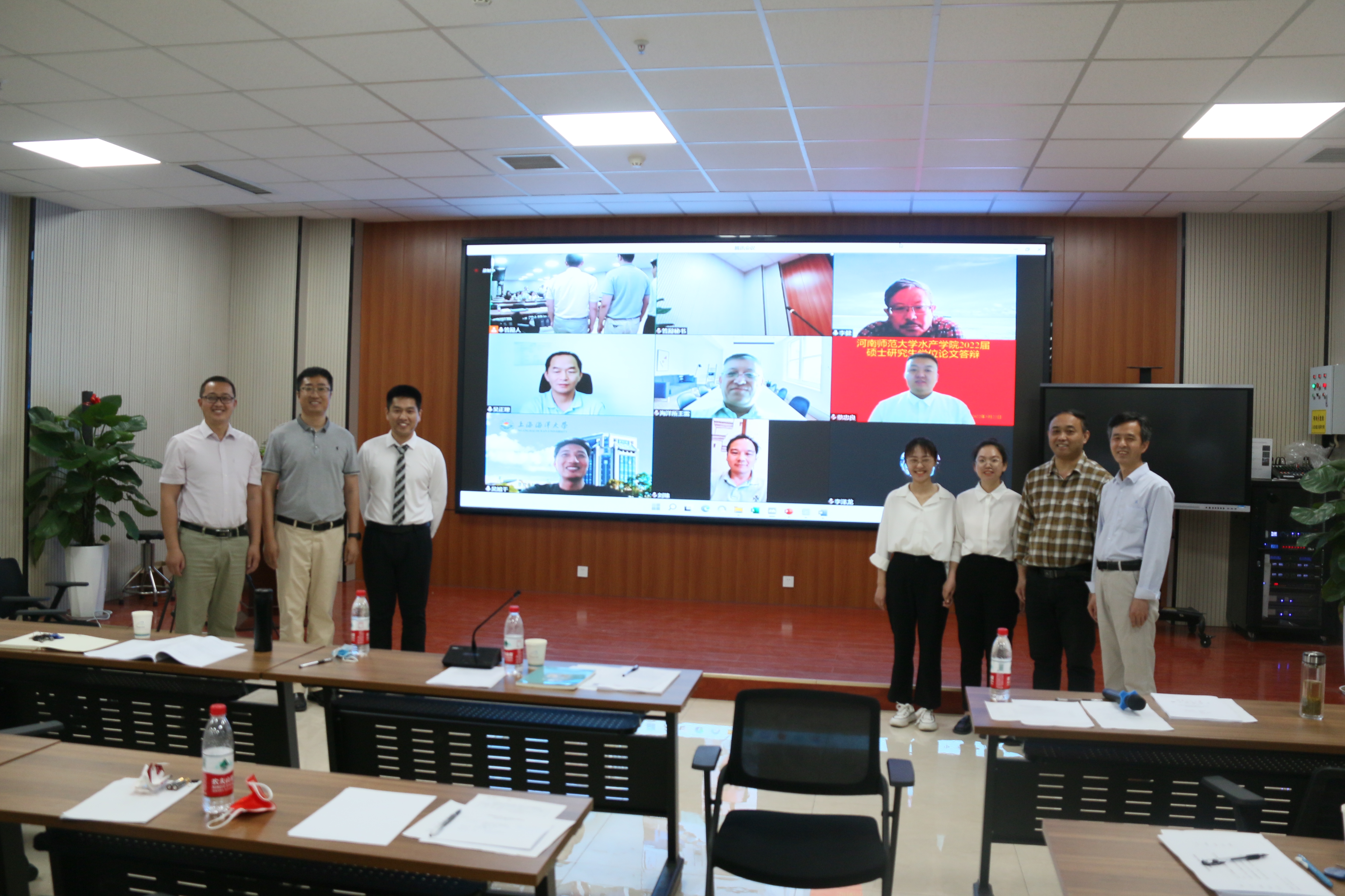 因疫情原因该会议线上线下同时进行,非常荣幸邀请到李健研究员(中国水产科学研究院黄海水产研究所)为此次答辩主席主持会议,以及王雷研究员(中国科学院海洋研究所)、吴旭干教授(上海海洋大学)、刘臻教授(长沙学院)、吴正理教授(西南大学)四位答辩委员共同参加线上答辩会。答辩过程中李衡同学以图文并茂的形式结合PPT阐释自己的毕业论文,答辩委员会成员以高度负责的治学态度和严谨规范的学术精神,根据论文内容提出相关问题。随后李衡同学简明准确的逐一回答问题,并充分听取答辩委员们的意见和建议。最终经答辩委员会一致同意李衡同学顺利通过硕士学位论文答辩,建议授予硕士学位。