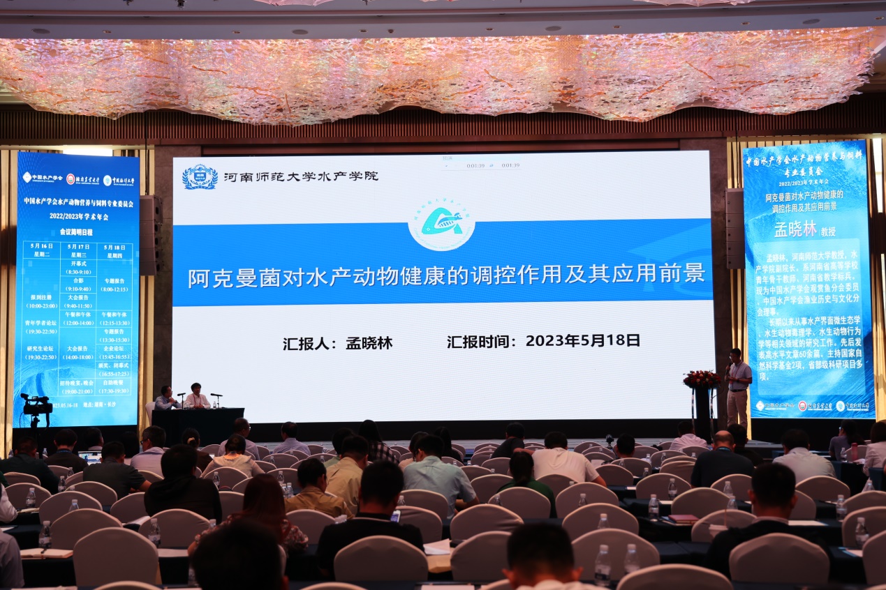 5月16-18日,由中国水产学会主办,中国水产学会水产动物营养与饲料专业委员会、全国动物营养指导委员会水产动物营养分会、湖南农业大学、中国海洋大学、湖南省特色水产资源利用工程技术研究中心、岳麓山实验室承办的主题为“推动水产饲料行业高质量发展”的中国水产学会水产动物营养与饲料专业委员会2022/2023年学术年会在长沙举行。来自全国多所高校和科研院所的专家、学者、青年学子以及知名企业家代表和技术骨干近800人参加会议。课题组孟晓林、常绪路、杨国坤和张新党老师参加此次会议。孟晓林教授受邀做了题为“阿克曼菌对水产动物健康的调控作用及应用前景”的大会报告。