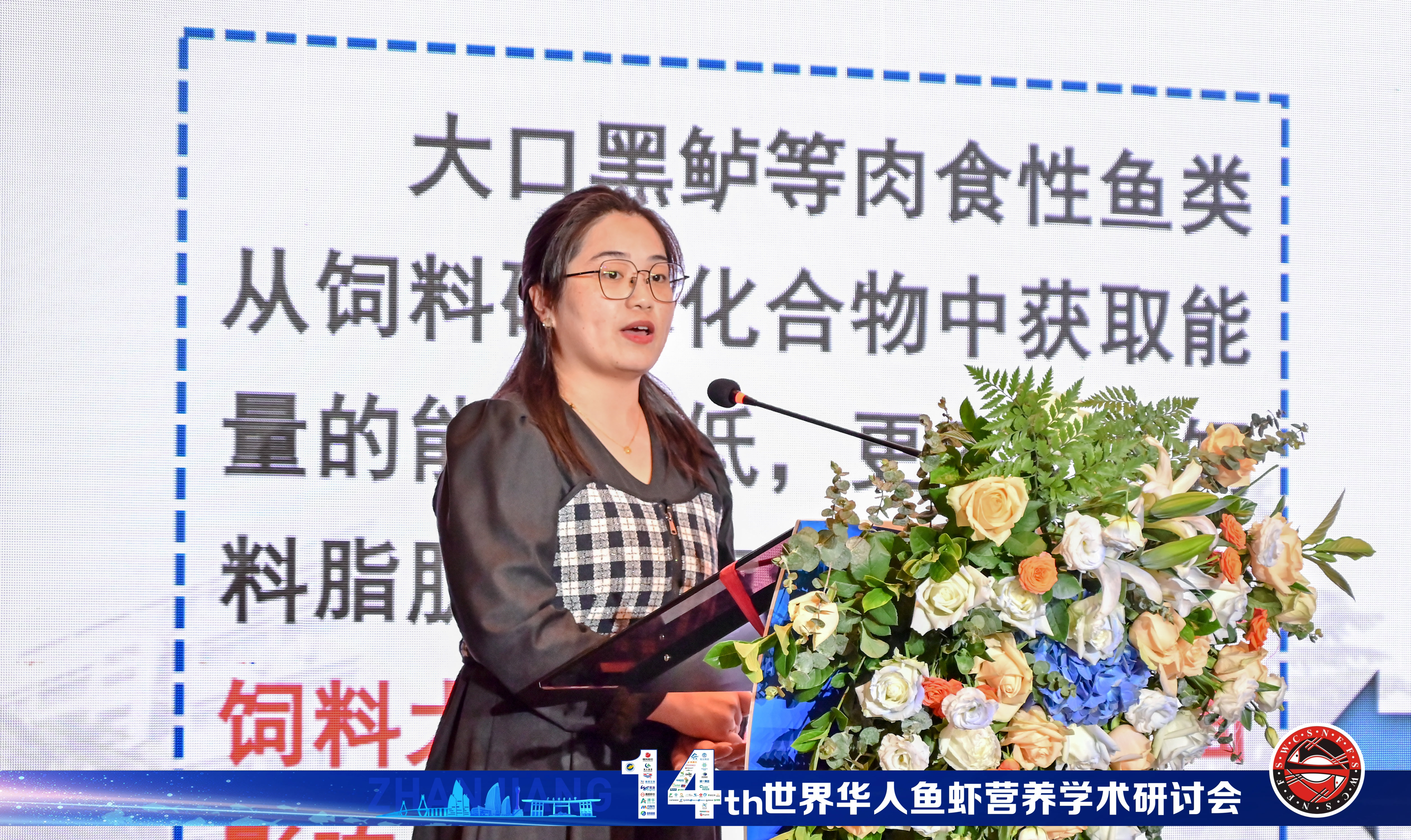 课题组孟晓林、杨国坤、常绪路、张新党老师及硕士研究生江爱霞、贠莉莉参加了此次会议。会议上,孟晓林教授做了“阿克曼菌对水产动物健康的调控作用及其应用前景”的大会报告,并主持了“绿色添加剂研发与应用”主题的部分报告。张新党讲师做了“抗性淀粉对大口黑鲈生长性能、脂质代谢及免疫屏障的影响”的大会报告。此外,两名研究生对近期研究成果做了墙报展示,江爱霞同学获优秀墙报奖。